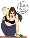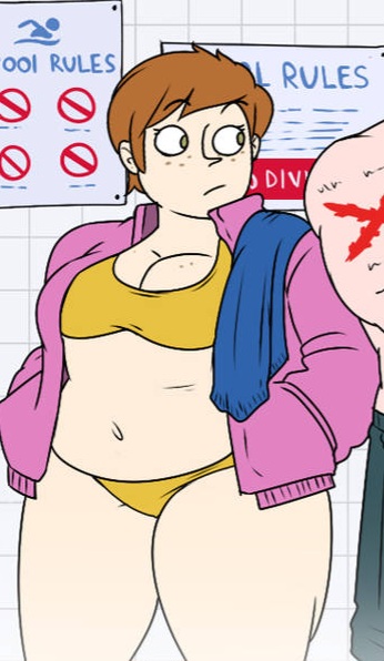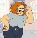 >>279514 The character's name is Tamara, and she is the protagonist of a Belgian comic book series named Tamara. Have her weigh herself on a scale after gaining a lot of weight. Have her look disappointed in herself for letting herself go this much.