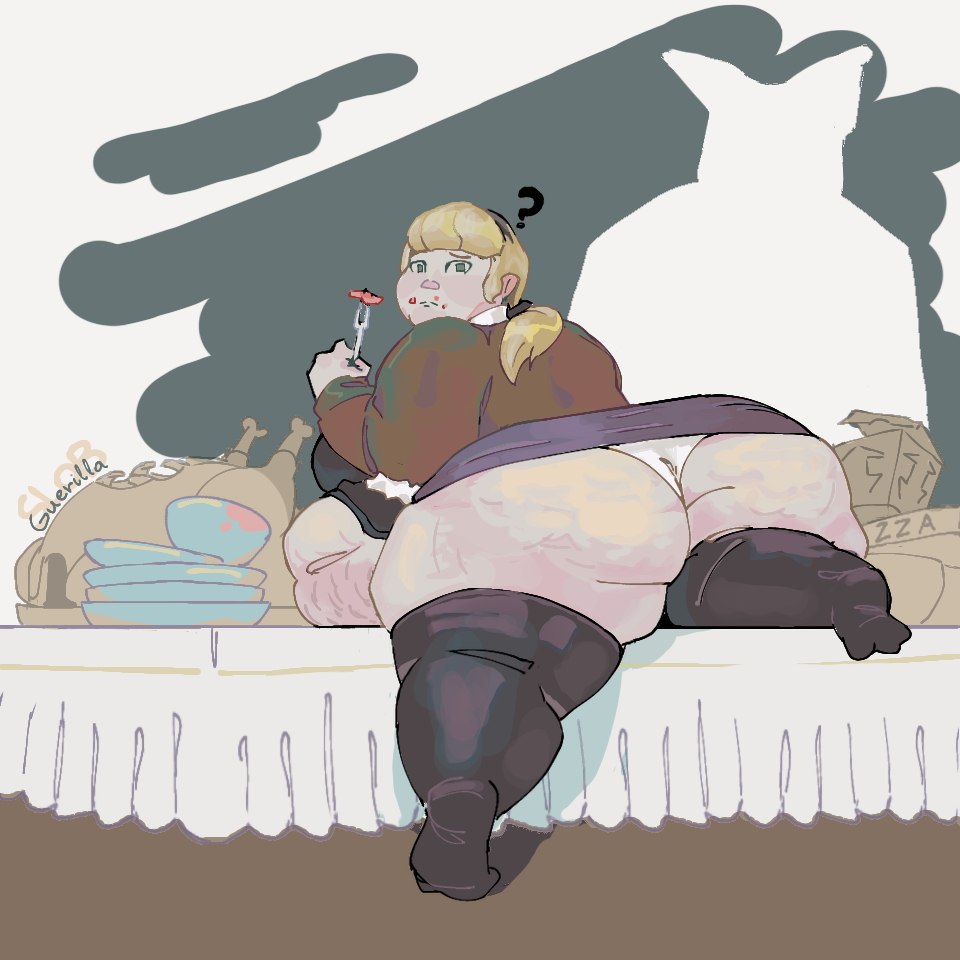 >>279514 Requesting Commander White from NieR as big as the reference image with her being stuffed after eating various pastries, if possible please made her release a small belch. Please and thank you <3