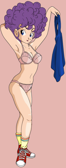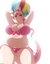 >>279514 A bottom heavy taruco wearing a bra and pants but the pants button pops while she's eating ice cream