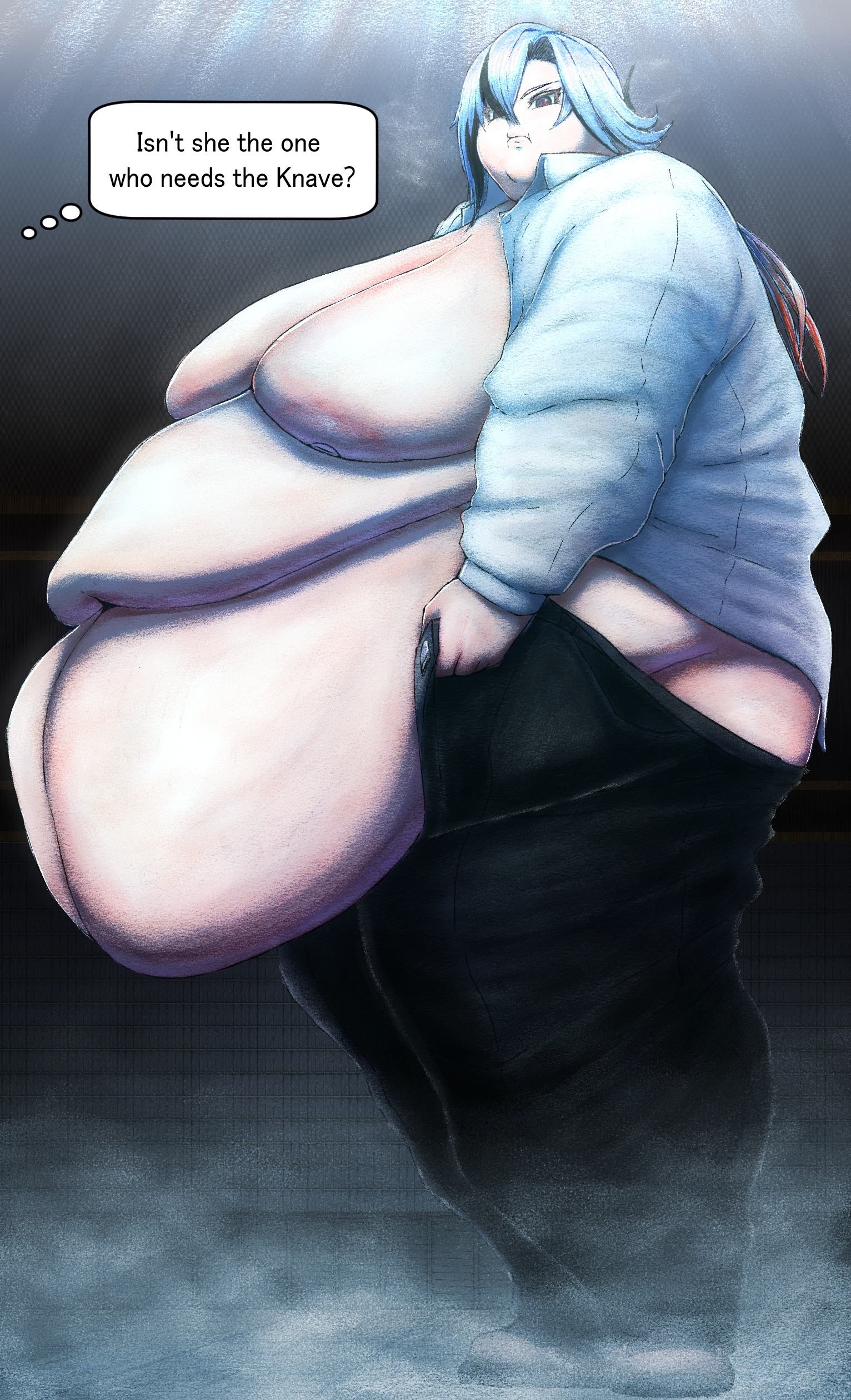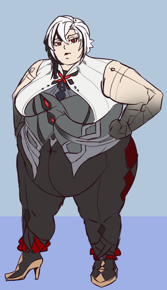 Anybody got this drawing of a hyper fat Arlecchino that looked like she was winded or something?