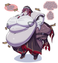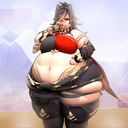 Anybody got the pictures of a hyper fat Mavuika seating on a throne while she bursts out of her clothes? If I remember correctly, it had different alts, like some brown skin versions. Do anyone know who the artist was?