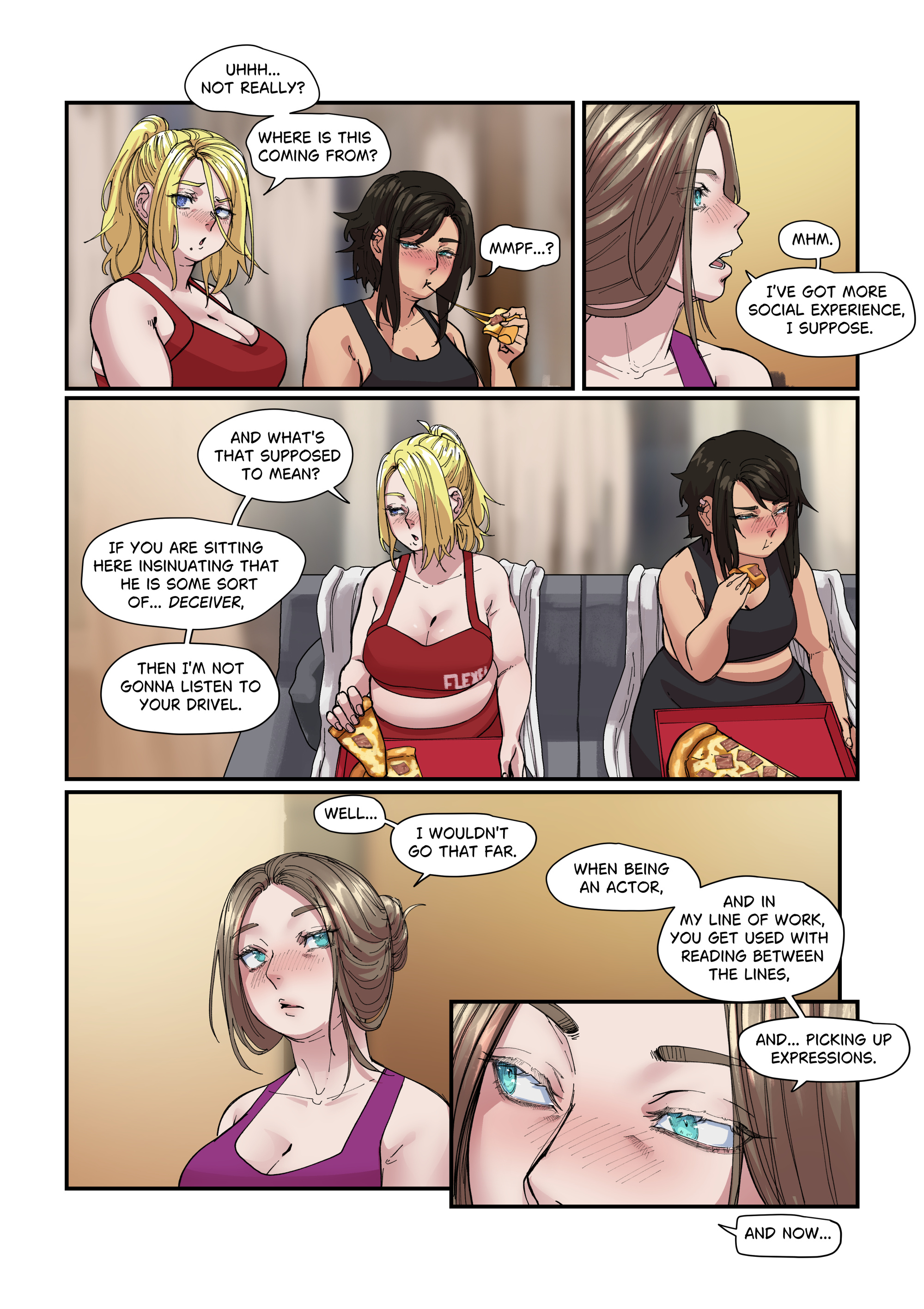 Not much happens when the last release was almost a month ago. What happened to a new page this week, hm? I think most complaints are just because we have been stuck on the same 3 pages since the beginning of DECEMBER. If anything is wrong here, it's Belt's dismal upload schedule. Even slopologists like Kipteitei at least crank out 1-2 pages a week. We get 1-2 a MONTH.