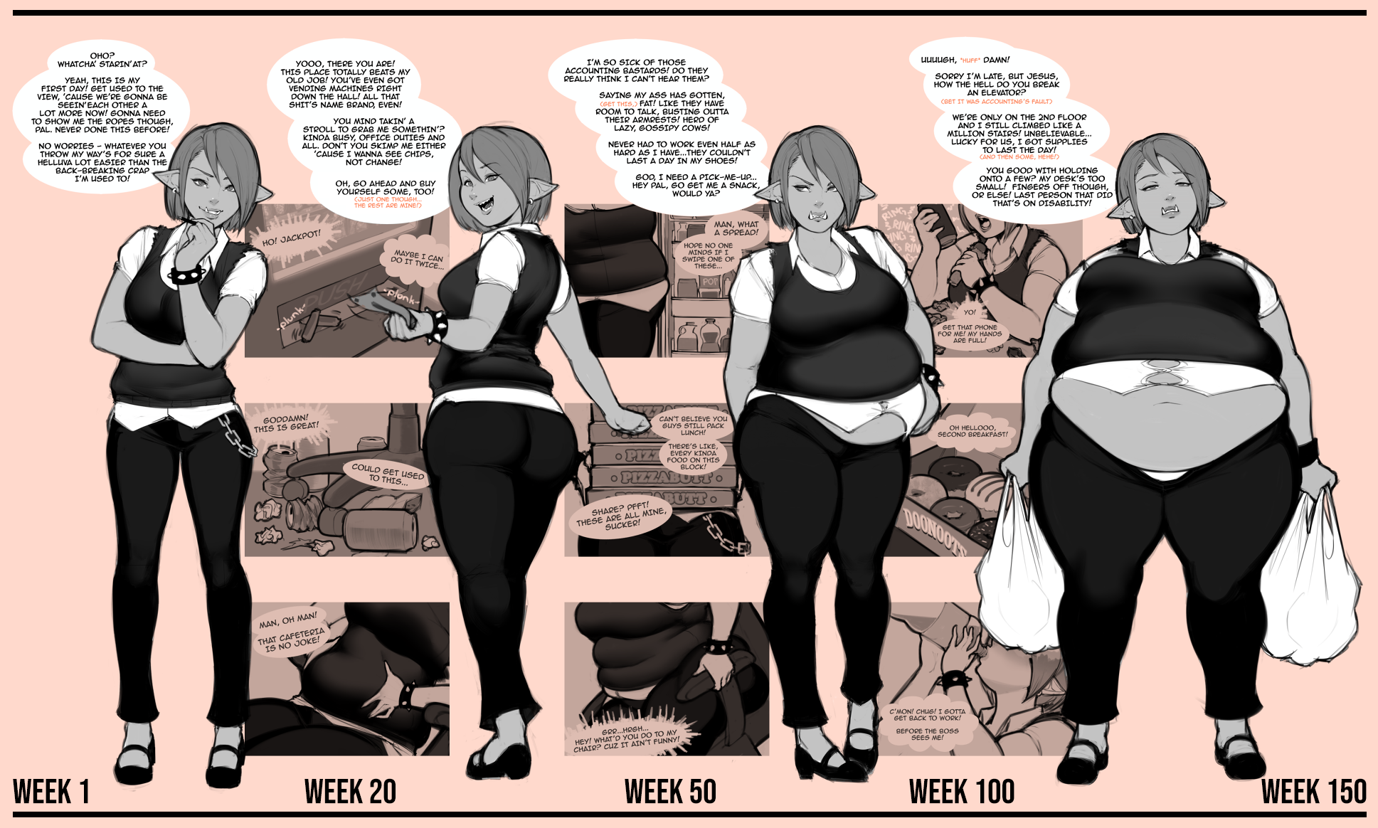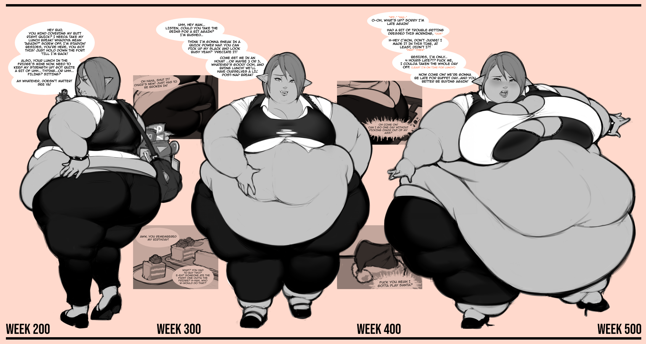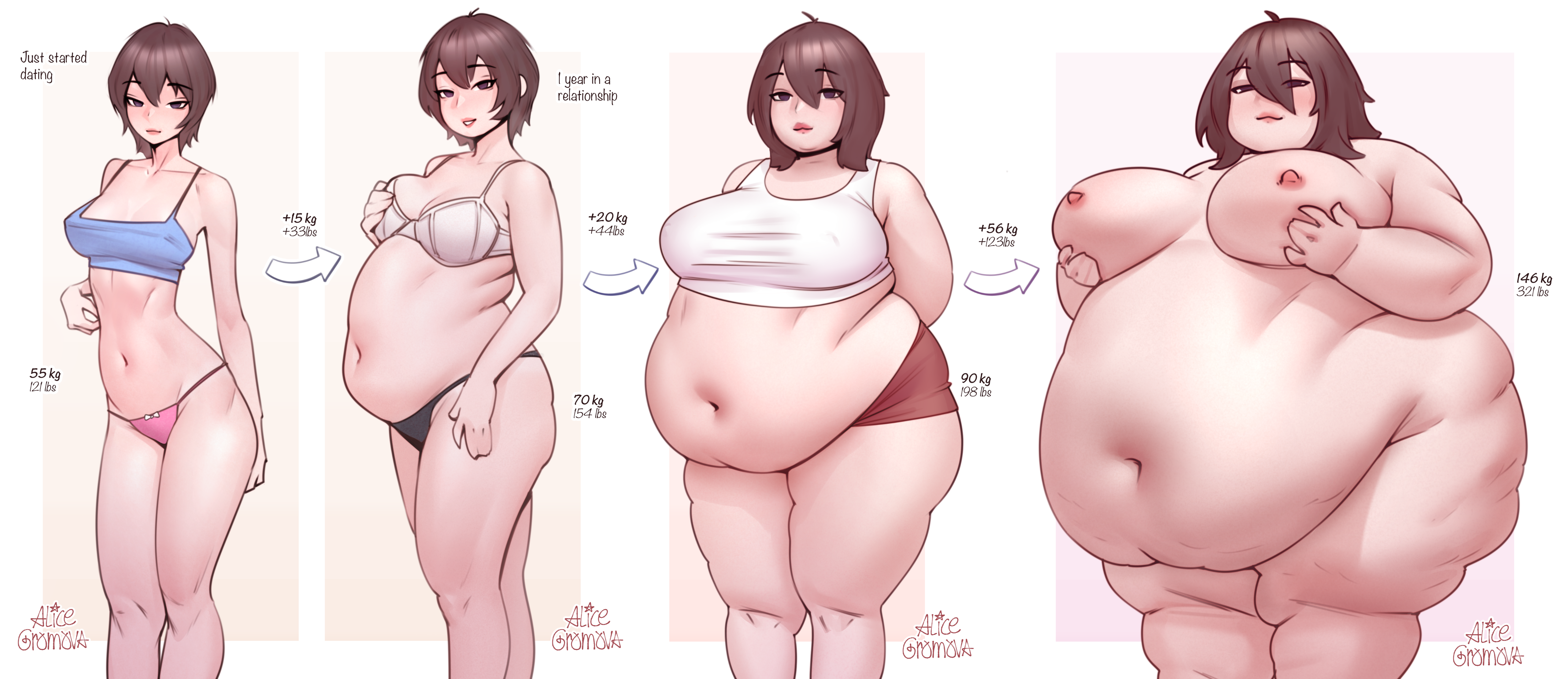 >>291629 Losing Control, Ayano's Diary, any of Habutton's assorted longer works (sadly he never really finishes them), Heavy is the Crown, Freshman Diaries, Midori's Growth, Kayobi no Kancolle and Chubby Girlfriend. I'd also suggest Rin_Noheki's My Boyfriend has a Fetish for Excess Fat but he dropped it a bit too early. I know my personal favourites of Log Myu and such arent appreciated by this crowd, but there's still a lot to go around.