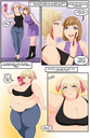 Just by seeing some of the pages you can see a difference in quality. The coloring is better with actually showing a texture difference between skin and clothing. The panels are more creative with panels showing different parts of the girls body getting bigger or some panels being covered by someones belly, different styles of text and actually showing the character getting bigger in real time.