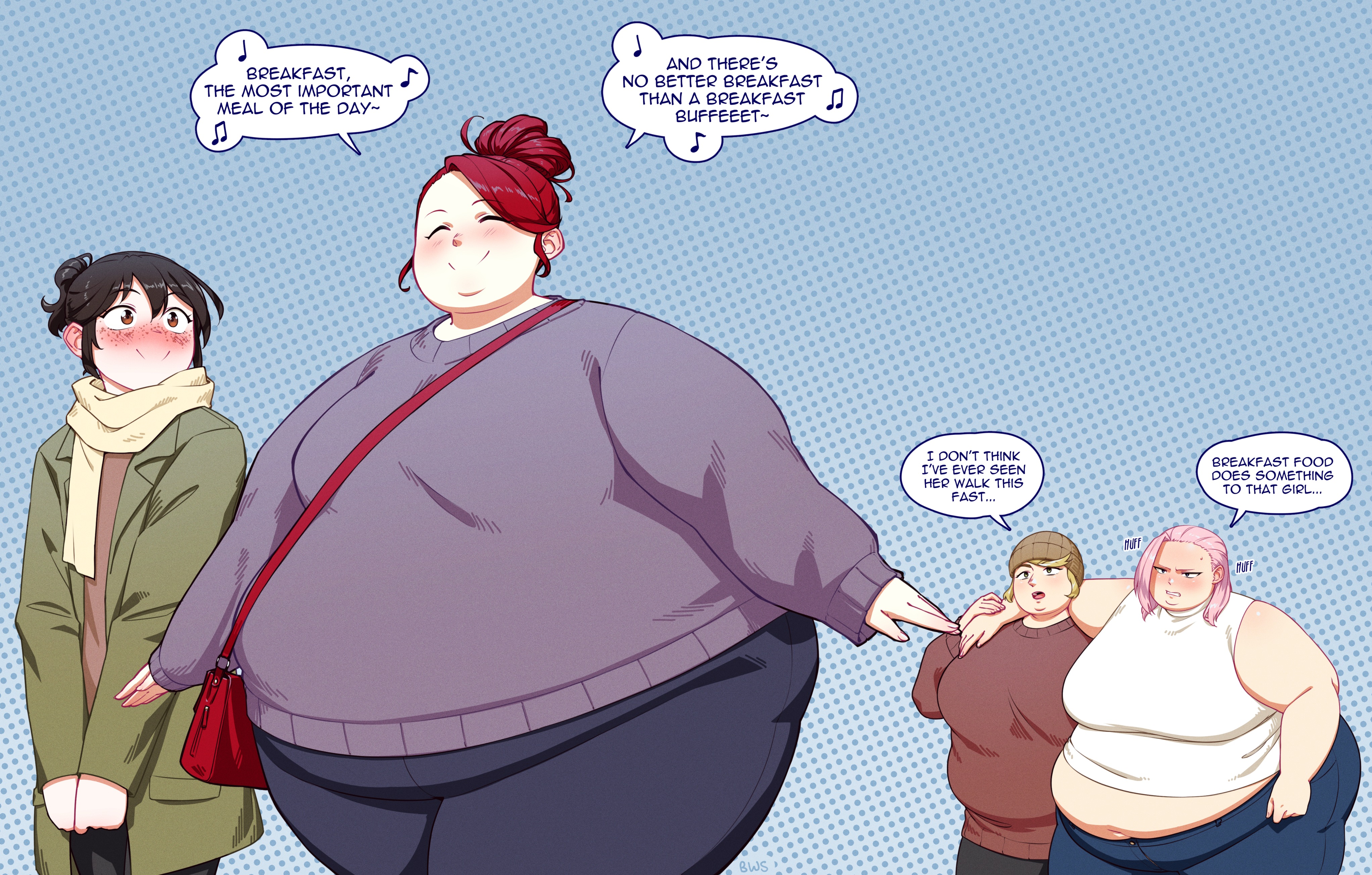 >>294028 While its nice seeing her friends also getting bigger I do wish this series had more feeding/eating pages like the last one where she was being tube fed. Hopefully the next page is her two friends being stuffed full laying on top of the stuffed blue haired girl