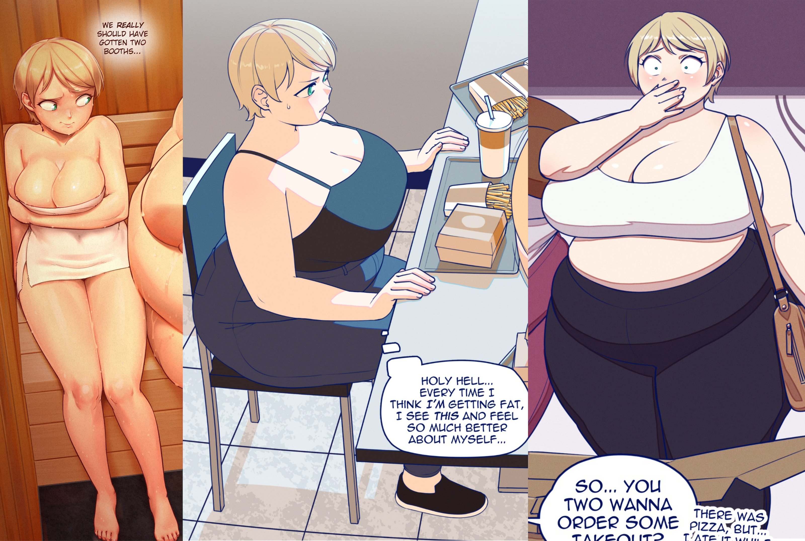 I wish the Selene sequence had more horny elements. Its hot seeing a girl gain weight, but when the pages are nothing, but her laying on a couch just consuming and being exhausted makes it feel kind of boring. Wheres the blushing or excitement from her becoming bigger? I want to see her feel horny, beg for more food, try to touch herself ect and not just look zoned out or exhausted. So far the only hot pages were when she was being tube fed and her on the bed after being stuffed with food. Hoping to see something more interesting soon and if not its just gonna be another mid sequence