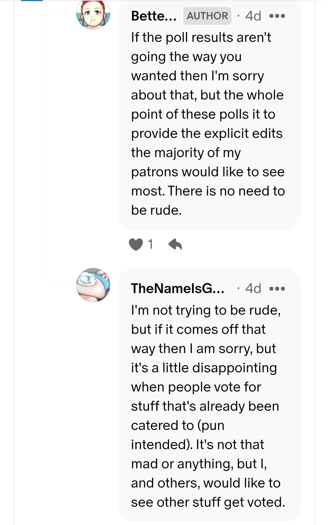There have only been 2 new drawings and this thread already has 46 messages, THAT'S WHY THEY DON'T LAST MORE THAN A MONTH. It's really annoying to see the thread at the top of the catalog, to come in expecting a drawing of a cute plus-size woman and find 30 idiots whining. And I guess I'm part of the problem by complaining, but since the thread is so high up right now, I don't think it bothers many people