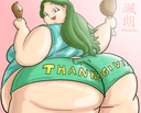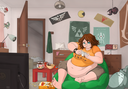 I guess by now it's a relatively ancient piece of Satsurou art so this'd be the place to ask, does anyone have the one of the mildly fat gamer chick who was playing some sort of game, she was brunette with glasses in a beanbag chair wearing an orange t-shirt that rode up her gut and had yoga tights on for bottoms? Thanks in advance if anyone knows and has the art piece I'm describing.