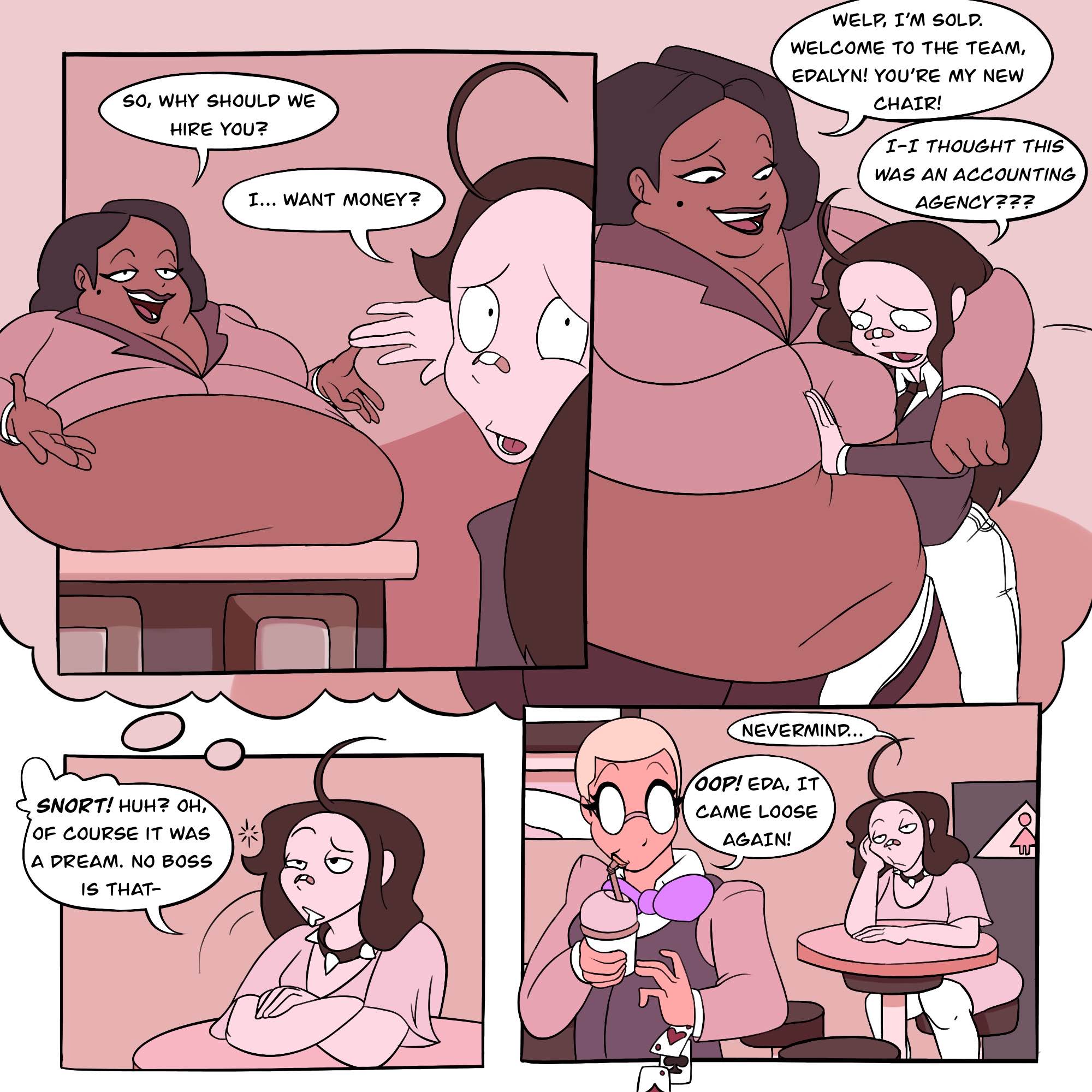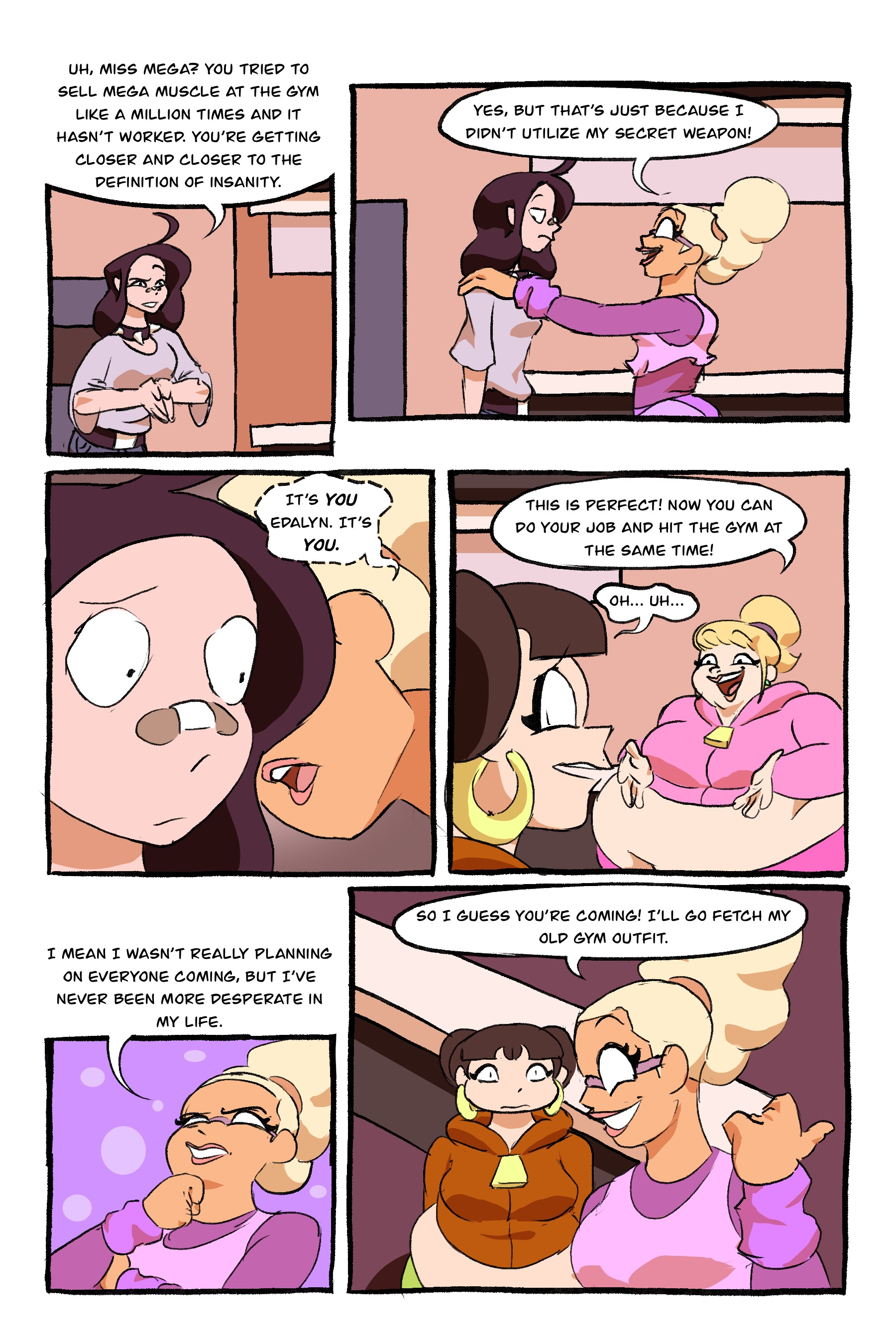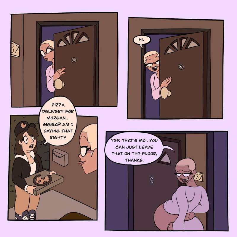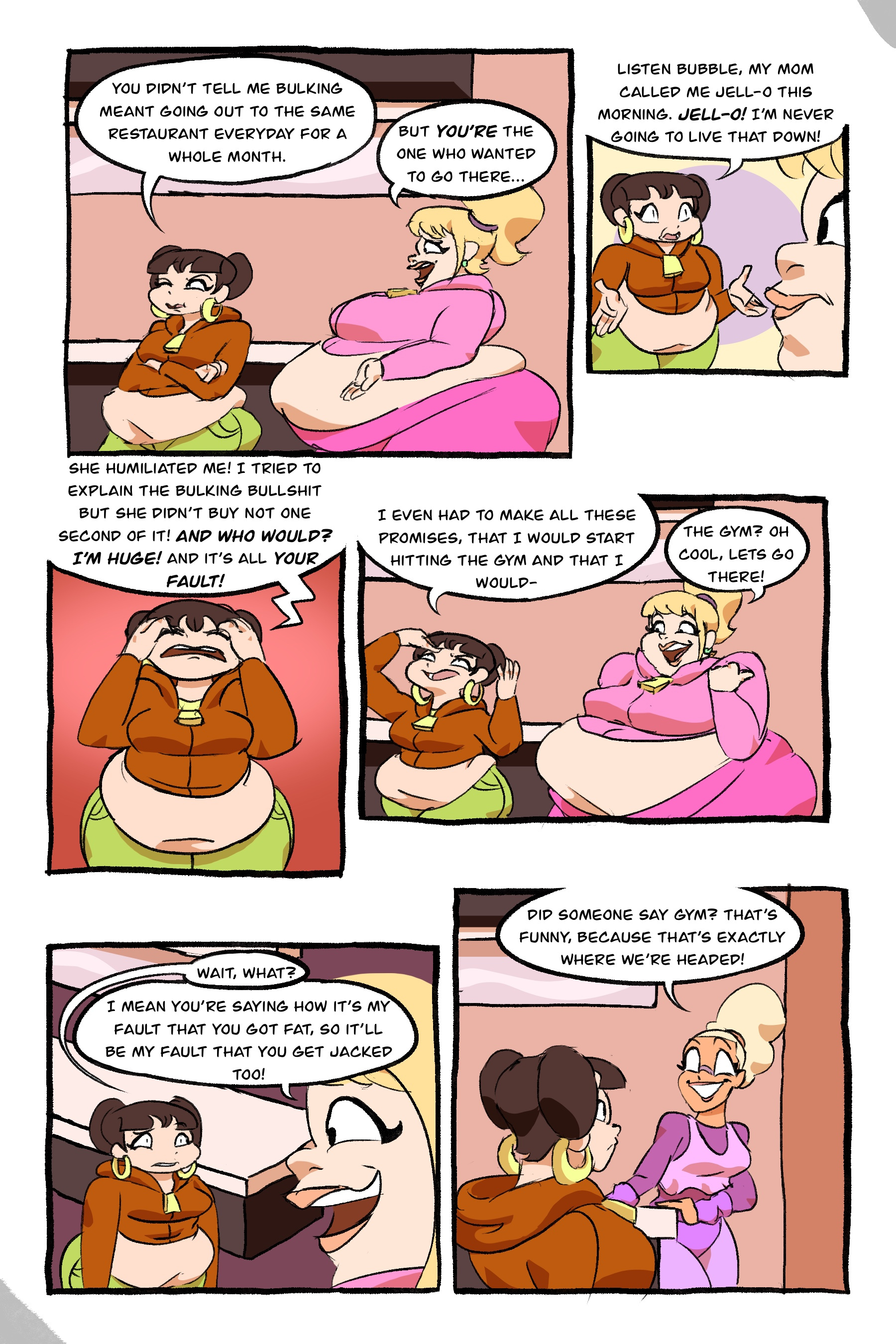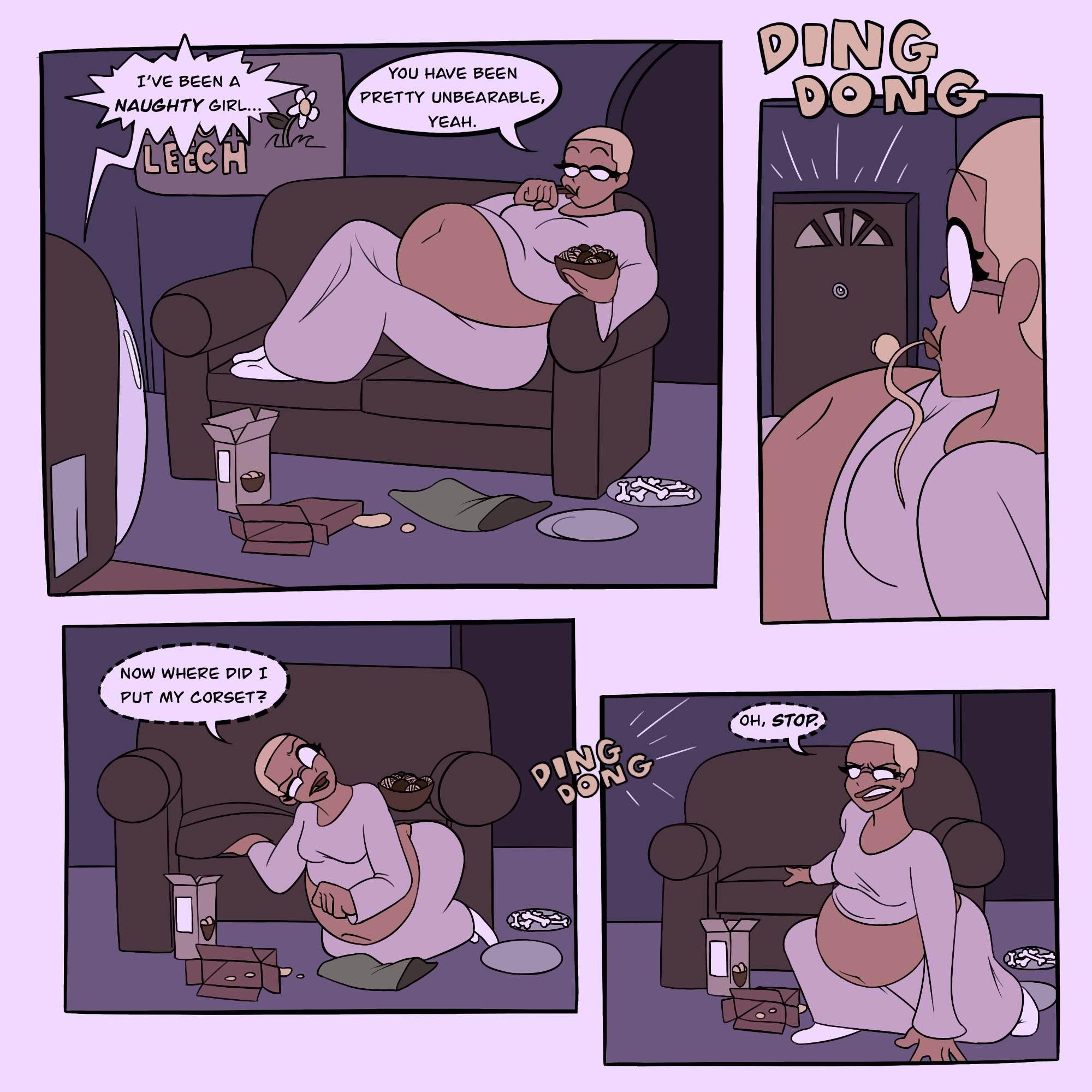 We get 4 panels of the red head customer in the first 23 pages, who is used as an example of a customer who is "losing control", and we get a handful of belly shots of Cassie eating, at this point it seems like the ground work is there for the stuffing and gaining to happen right?