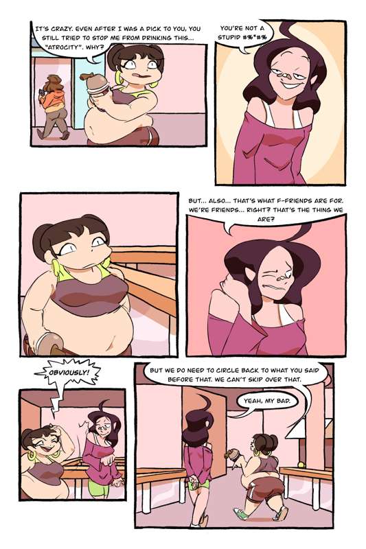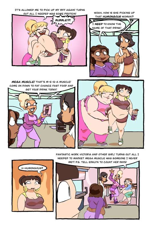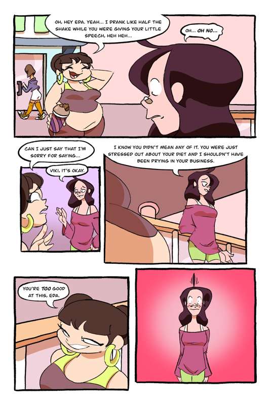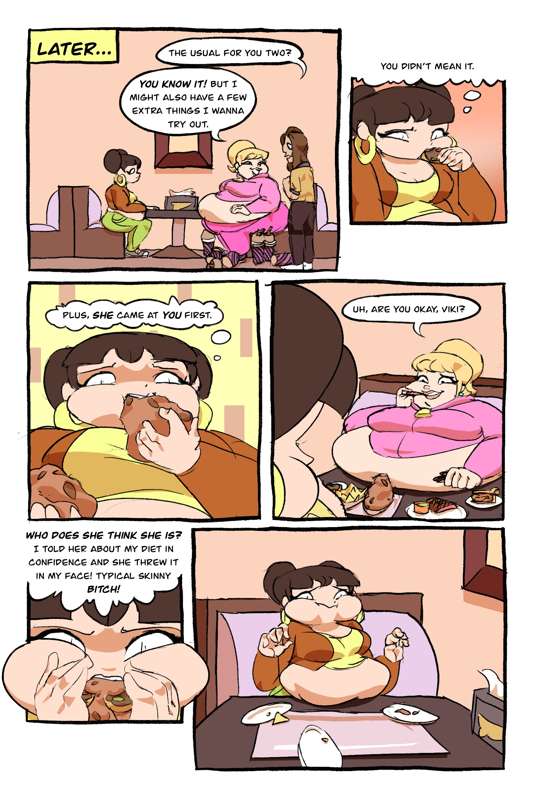 I get that CoolViki sets up multiple plots across these pages but it's basically a comic with some fat stuff rather than being a fetish comic, there's so much set up and fluff and then Dana relapsing and eating the burgers is one page, where we don't even see her eat anything.