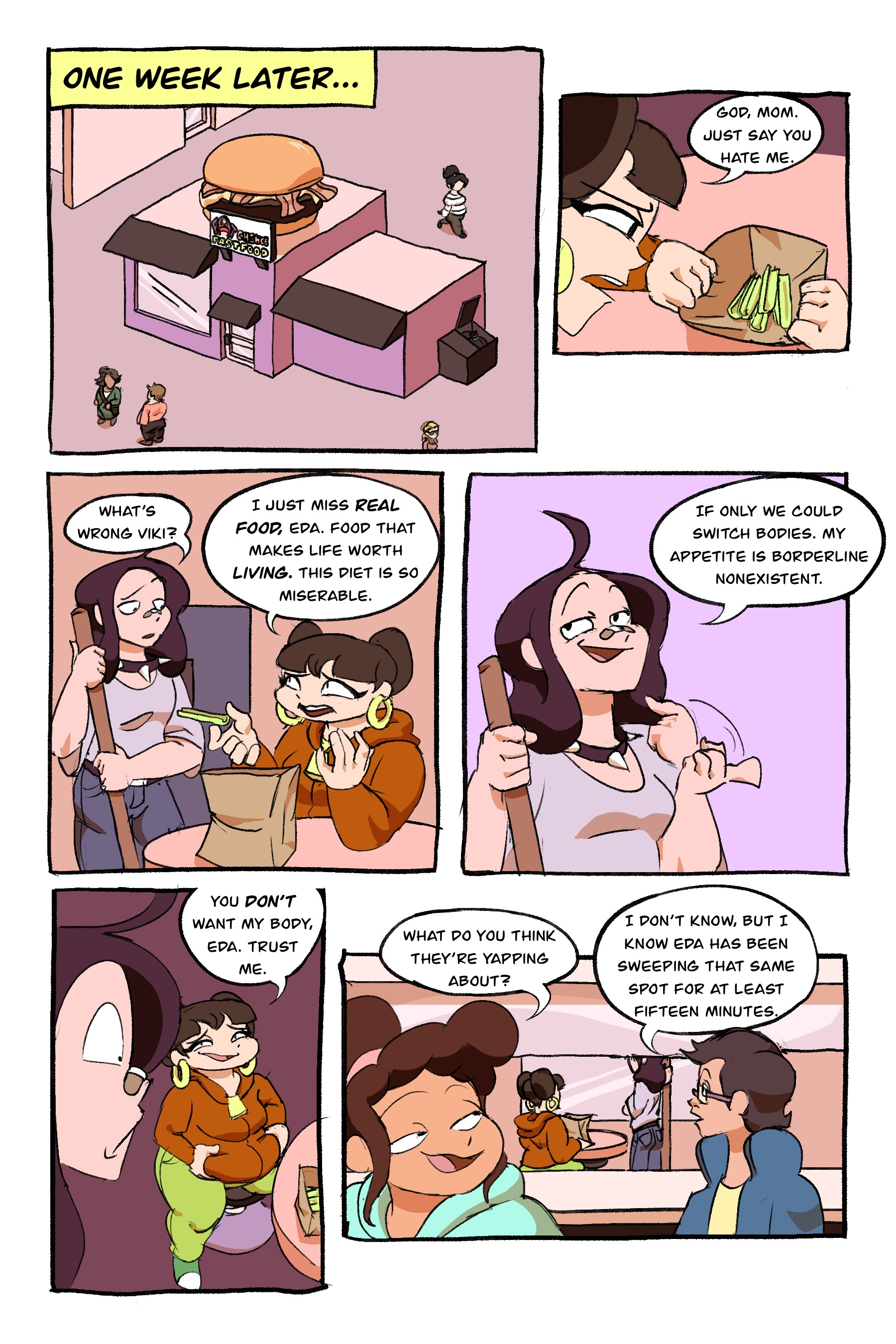 Viki get's put on a diet by her Mom on page 1 and it seems obvious that she's going to rebel against her, I wonder if there's going to be an addictive fast food place or maybe a special burger challenge in this comic.