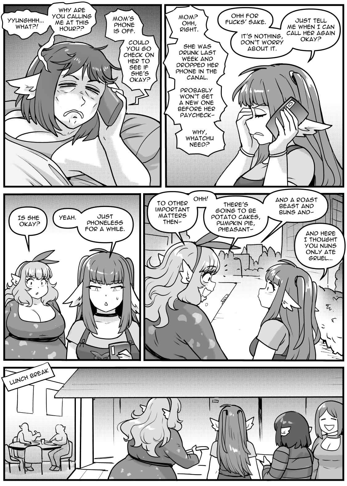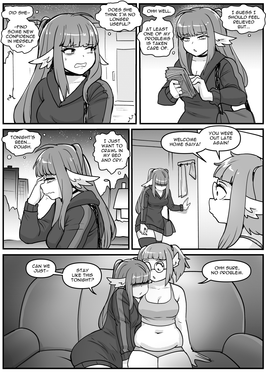 I think Kip still feels deeply guilty for the lolicon, incestuous story that was Breakfast with Sister. Evidence for this was in their handling of the DwS ending - some sort of post nut clarity previously unheard of that made her want to wrap it up in a wholesome way and move on. For years now they've been (subconciously) trying to make up for this by trying to create some idealized form of Elevated Fetish Literature™, not realizing that sometimes all the people want is characters they like getting fat and hot scenarios with said characters. No Lunch Break seemed to be right at this intersection at its best, but I think OSC was perhaps just too ambitious, and now they don't know how to wrap it up. I feel like there was definetly some vague outline of a plan, but we've veered very far from that vague outline. I also think the ending (if there was any) has seen countless revisions already. Less is more should really be something Kip keeps in mind when doing a future project. It's a real shame about these characters because they had a lot of potential. Perhaps some spin-off story will serve them right.