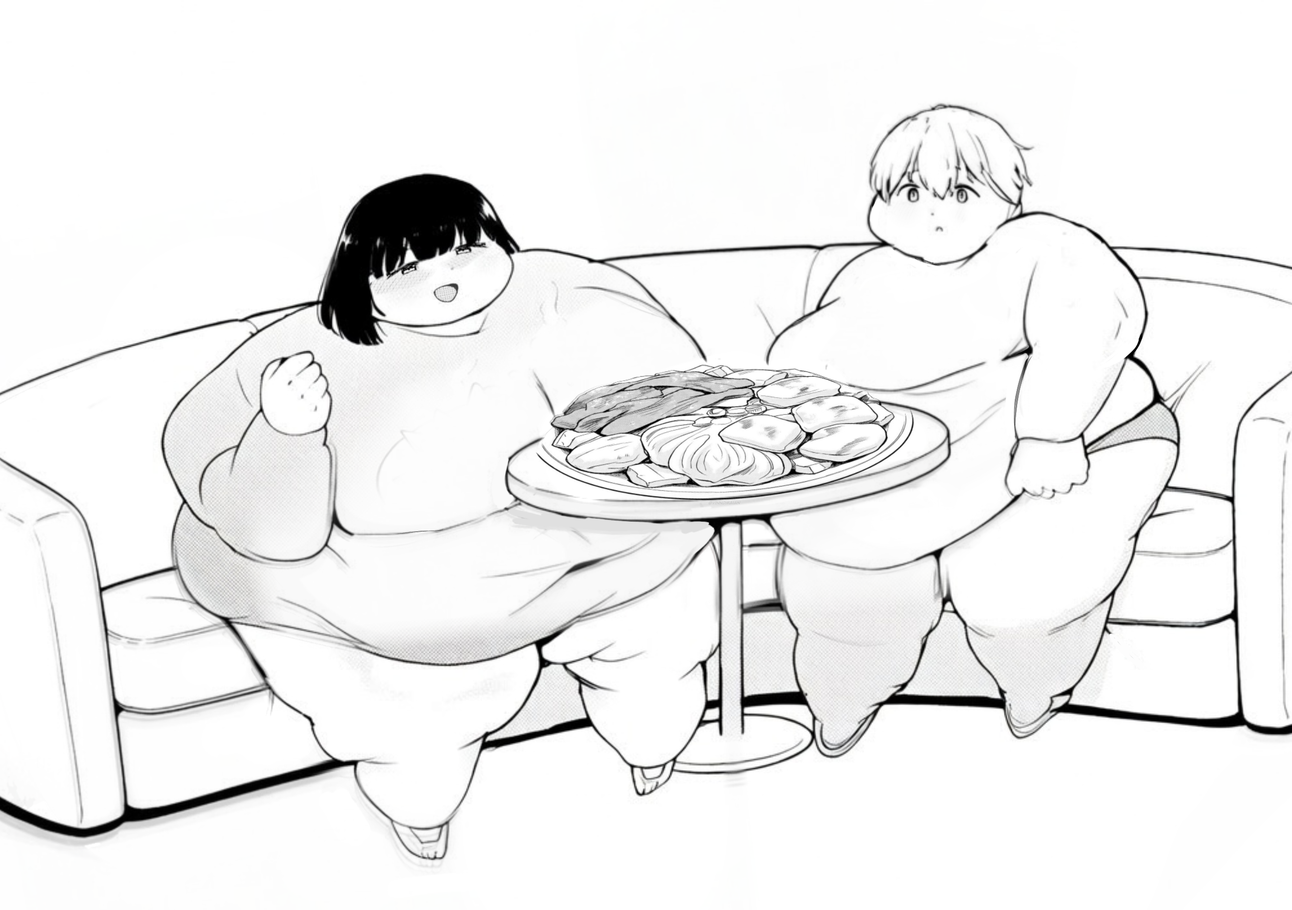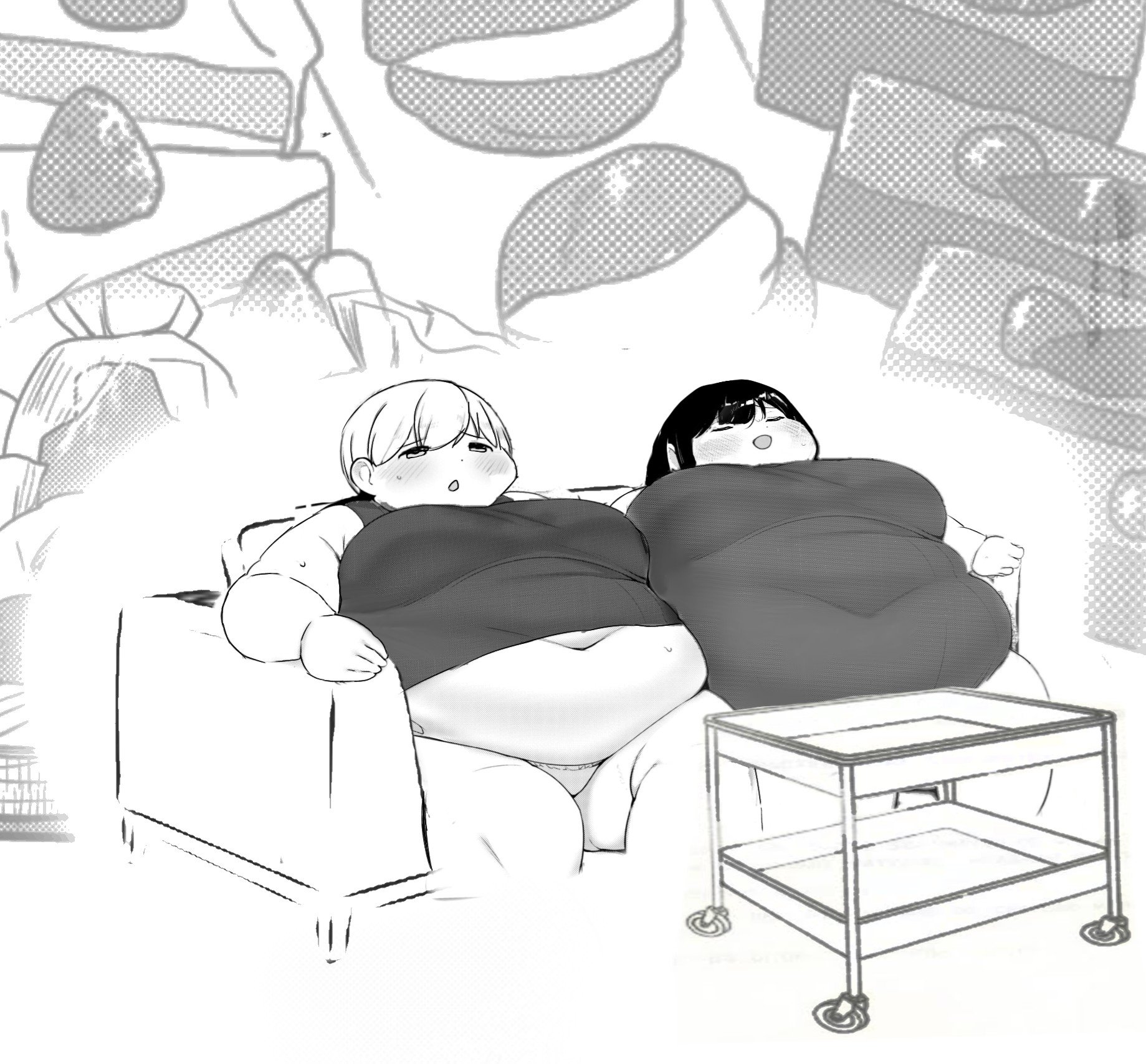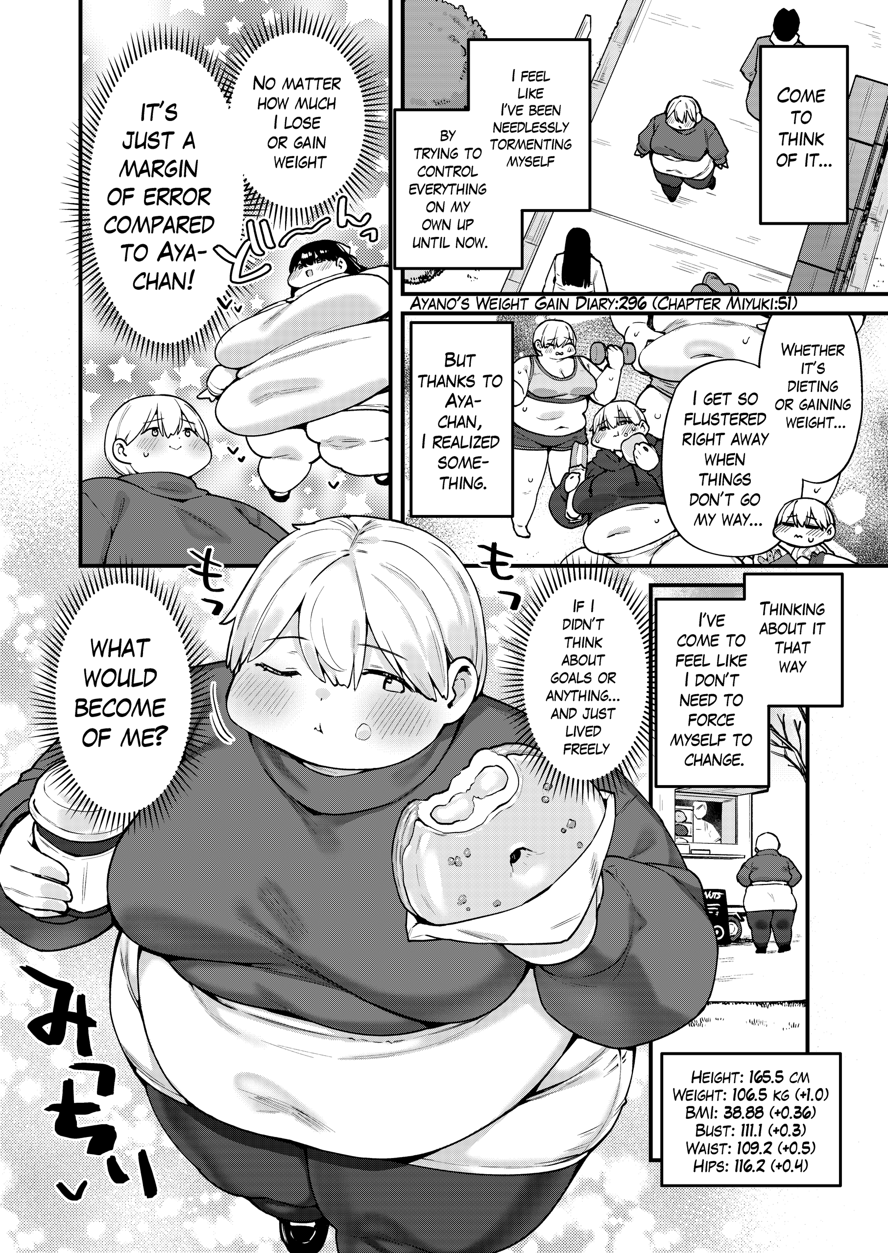 Ayano reaches a massive weight that leaves her completely immobile in her bed, in a messy apartment. Her friends Miyuki, Moemi, and Rio, already noticeably obese and soft, take devoted turns caring for her: feeding her, bathing her, moving her heavy folds, and attending to her every need, while they themselves continue to gain weight with pleasure. Ayano becomes national news as an extreme case of voluntary obesity, generating debate, criticism, and public fascination that influences more young people. Her university offers her a special 100% online program, personalized classes, and logistical support to continue her studies from bed, in exchange for her voluntary participation in a medical-psychological study on extreme weight gain.
