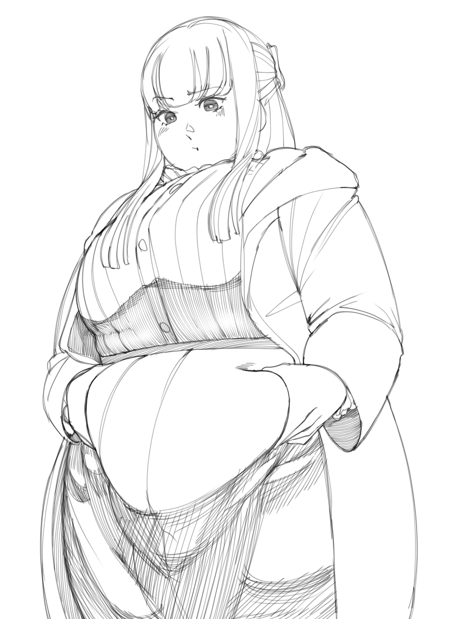 I would love to see more out of this thread, however, I have to recognize that this is a niche preference within an already small community of online fat fetish art. Especially to some extent that being well dressed is contrarian to fat fetish ethos by covering up the belly and the body whole. Very few artists can do both, draw a fat woman in nice, intact clothes while illustrating her still visibly fat. At the very least I can expect next fall to bring artists to draw their characters or their favorites decently bundled in a sweater or jacket.