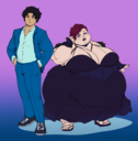 does anyone have art of fatties struggling to get up? like near immobile and they need help type shi