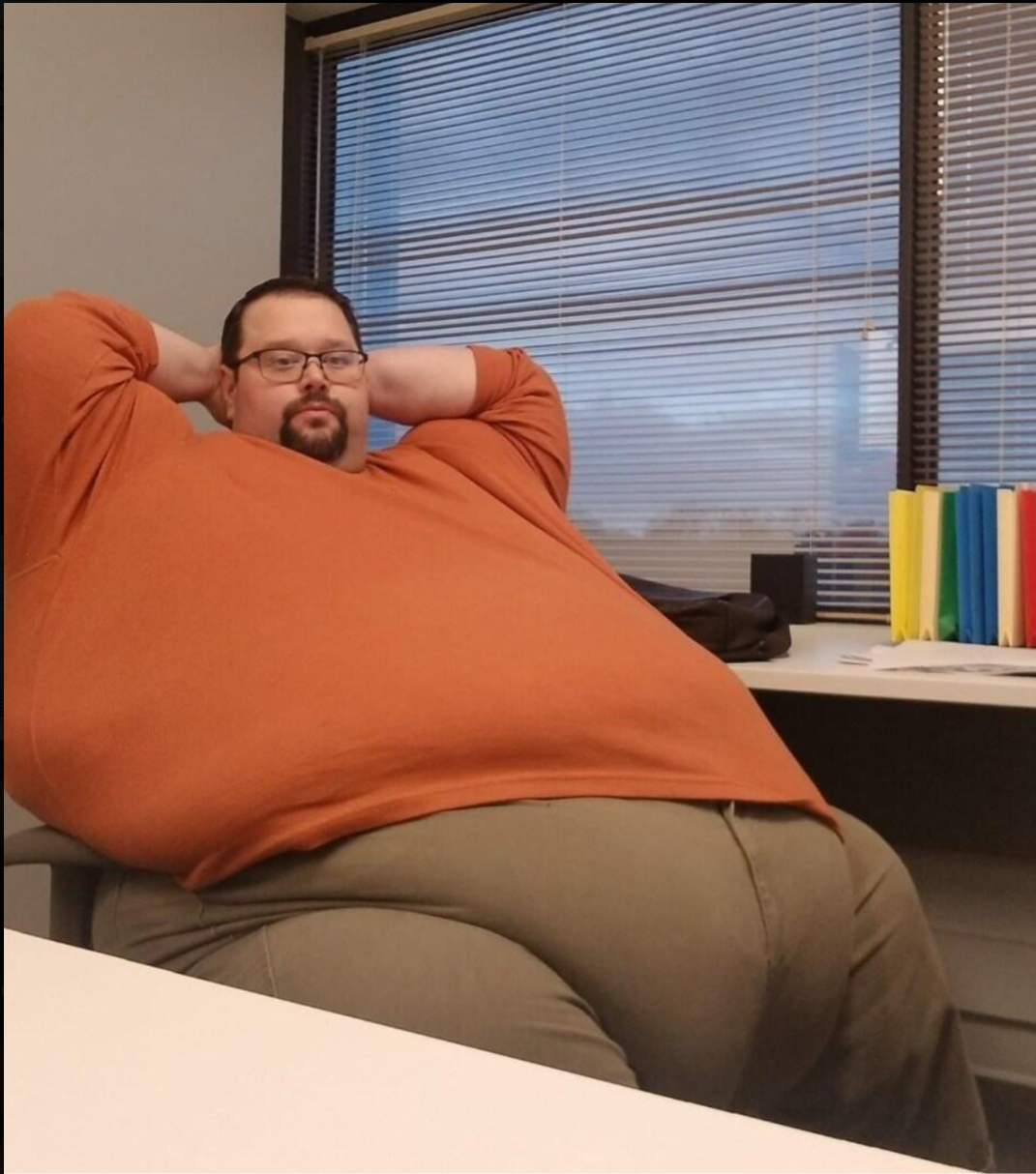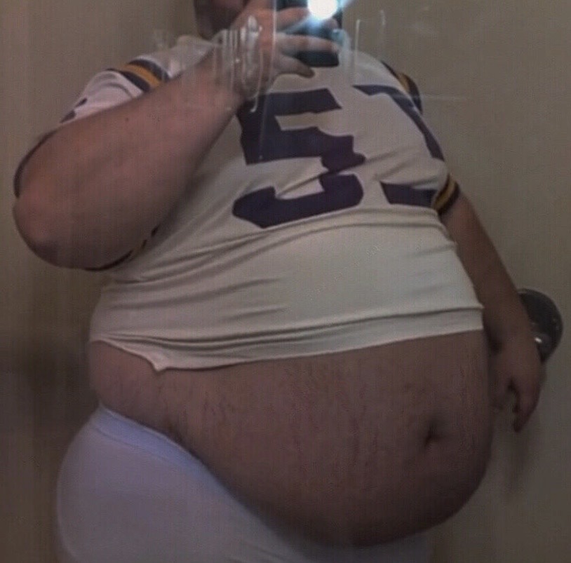 He went from fucking 330 to 480 in only 9 months. Whole ass 150 lbs in less than a year. And apparently it’s bc this encourager got him addicted to cheescake so he just eats it alll the fucking time. I’ve jerked it to his blimpy body so many damn times I’m obsessed bro