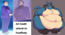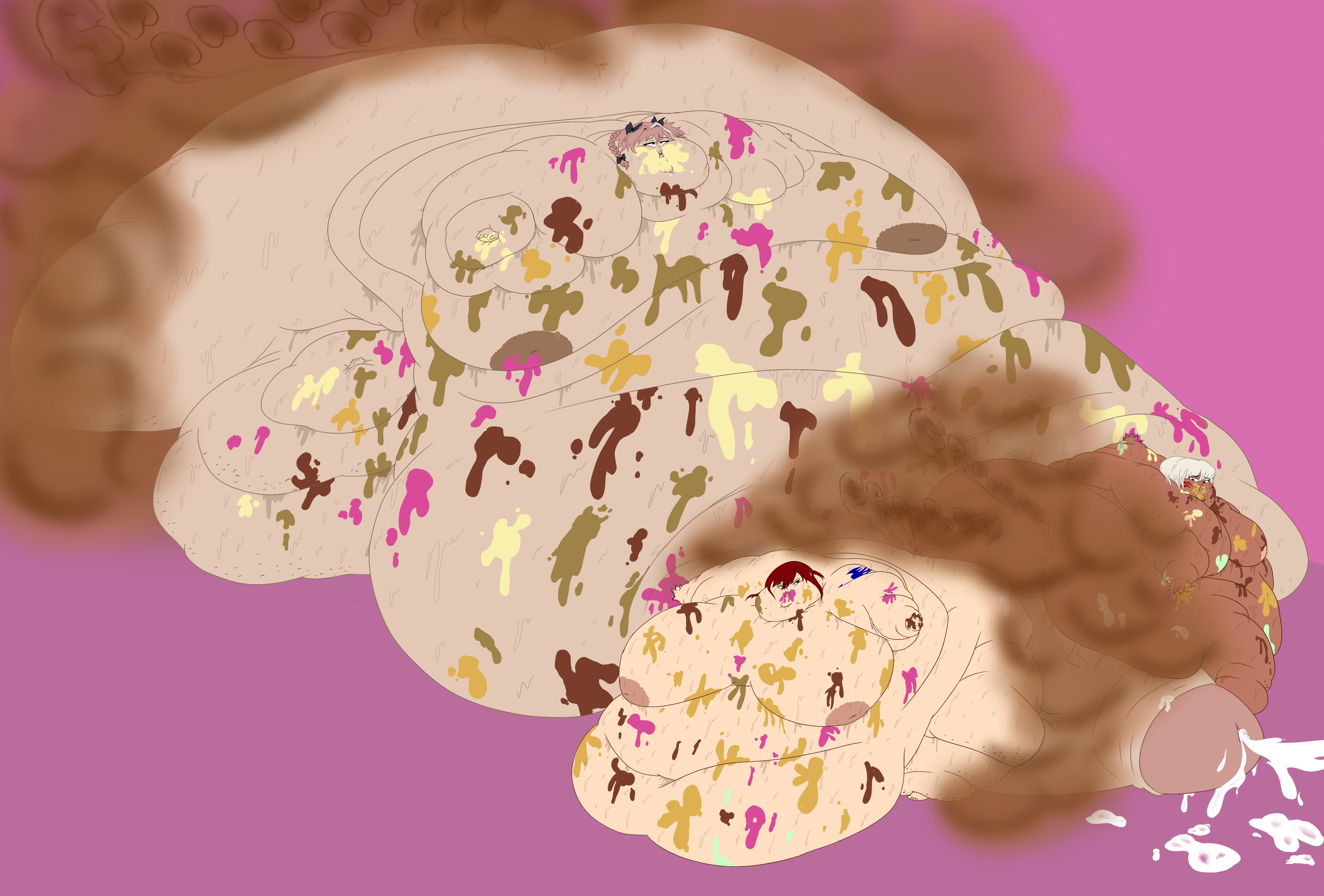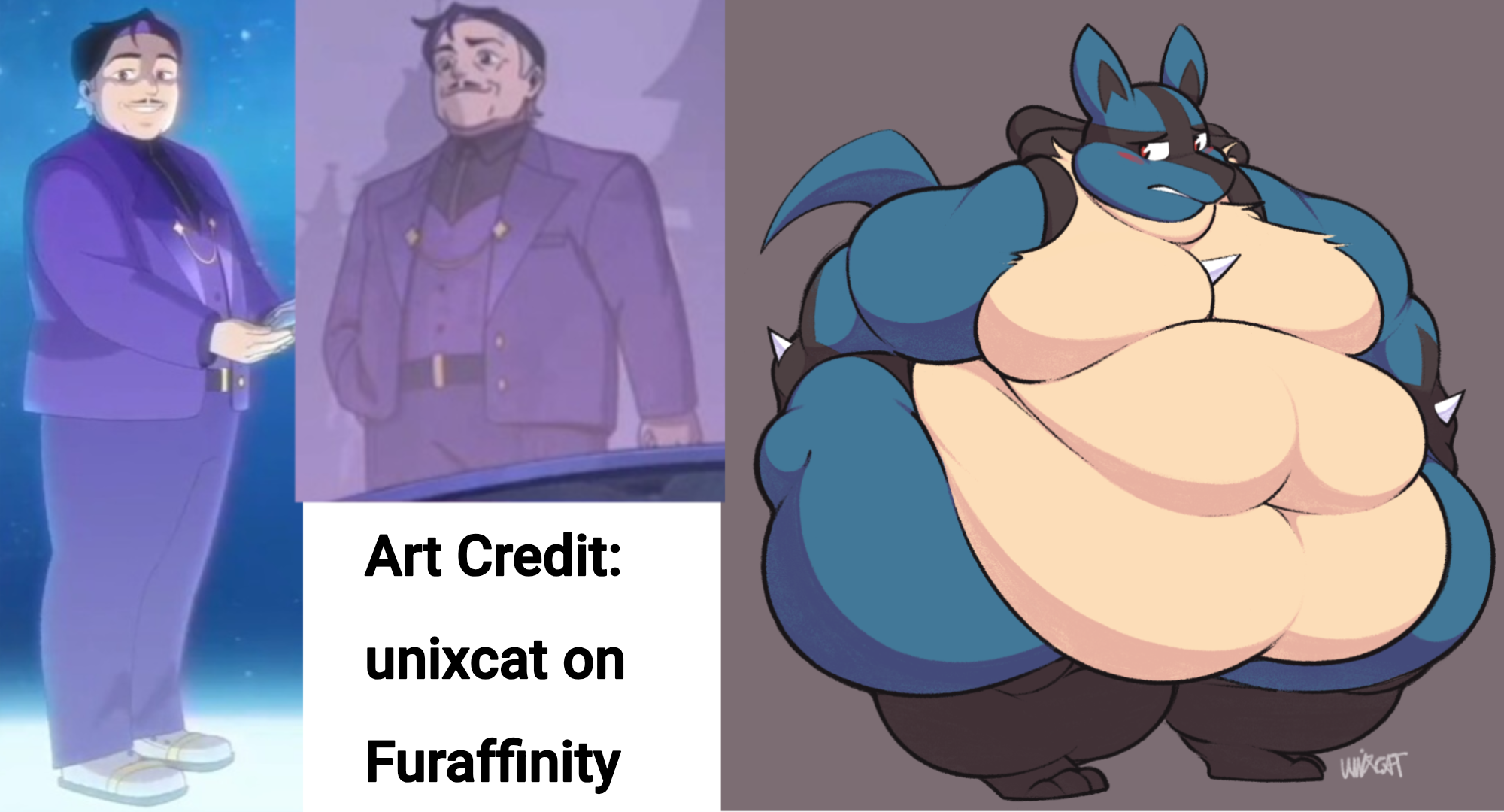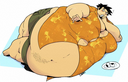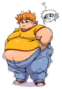 Going into more detail, either him being tubefed frosting or eating cakes and donuts (preferably an eclair, "long john" is another name for those that I've seen). Pear shaped figure (with an emphasis on ass) and the bellytype pictured (maybe a double or triple rolled variant? Up to you). Possibly with ahegao, but not enough to make it look rediculous. Preferably with a sideview, or at least something where most of his figure is shown.