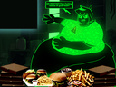 Due to technically difficulties, shipping to the Toxic Cesspit will be delayed, as Phisnom slams his stomach, frustration that food will be delayed for a while, as the toxic slimes stare in sheer awe and terror of his enlarged appearance. His 1200lbs of fat overlapping his slimy body, the glowing toxic green shining on him to show his massive features, and a disgusting gurgles and radioactive noises can be heard, along with a pretty nasty sounding belches that echo the entire facility..