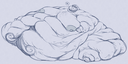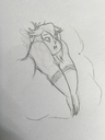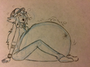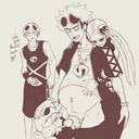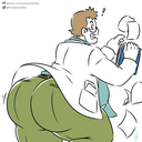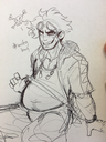 I forgot the name of the artist, they deleted their twitter account, but does anyone have the Leon that has a stuffed belly laying on the floor with his legs on a chair or something?