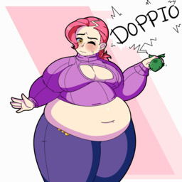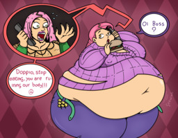 You know so long as it leads to his death any death is canon for diavolo in every reality giving his unique fate so anything with popping is in universe a canon fate. Meaning any inflation or weight gain is canon so long as he explodes or dies in some way. Morbid but interesting!