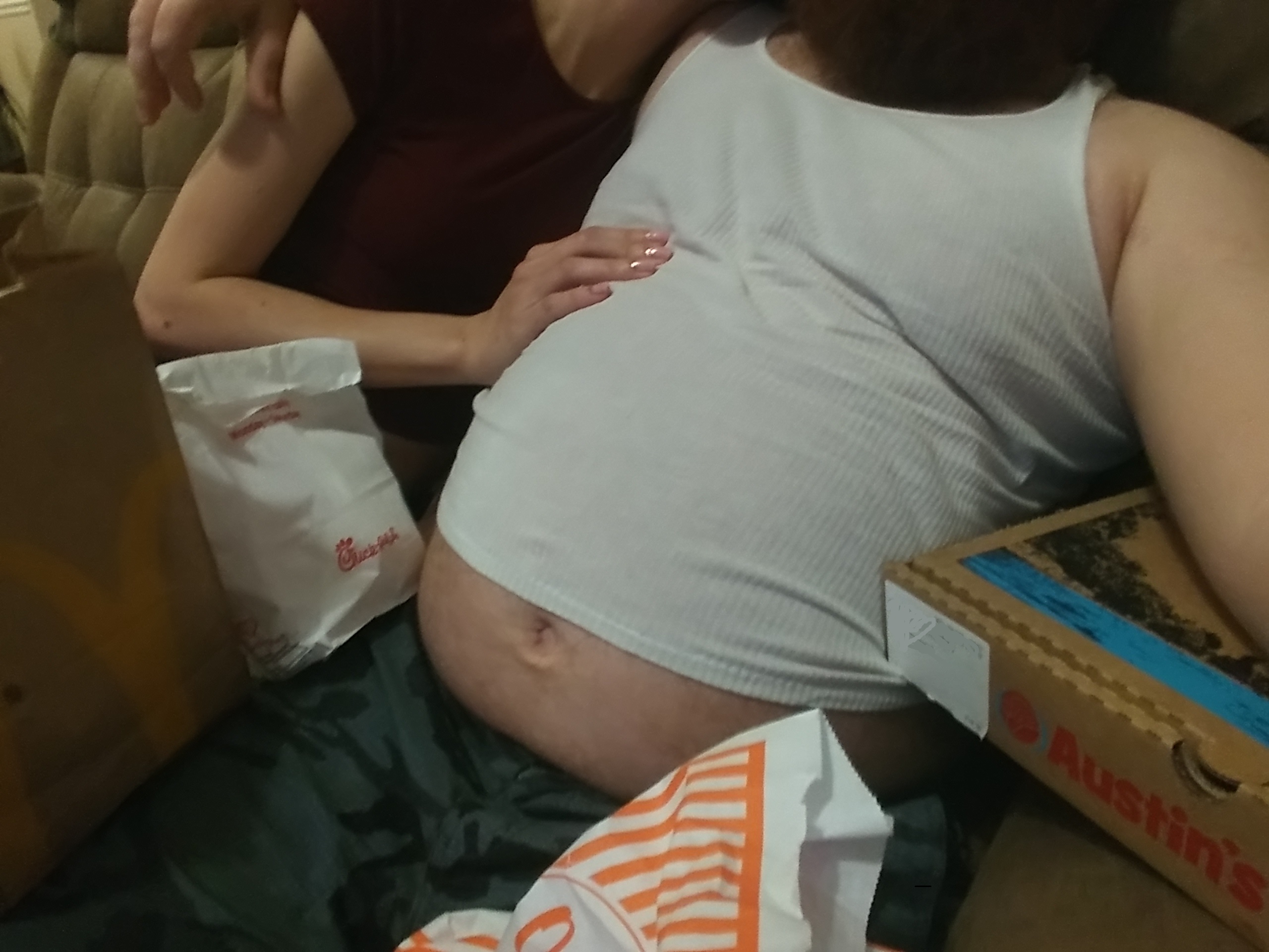 Last night was great, had been almost a month since I hooked up with my girl because I've been out of town for two weeks and then she got covid. Both of us clearly continued eating like trash. She started on top, when we first started dating she could ride my dick all night, now she can't go longer than a minute or two without getting insanely out of breath. We switch positions and I start to fuck her from behind, I have to pick my belly up and set it down on her back otherwise I can barely penetrate due to the combination of her big ass and my belly. After awhile I'm out of breath so we finish by 69ing, fupas smashing into each others faces. Split a tub of ice cream together afterward and fall asleep naked.
