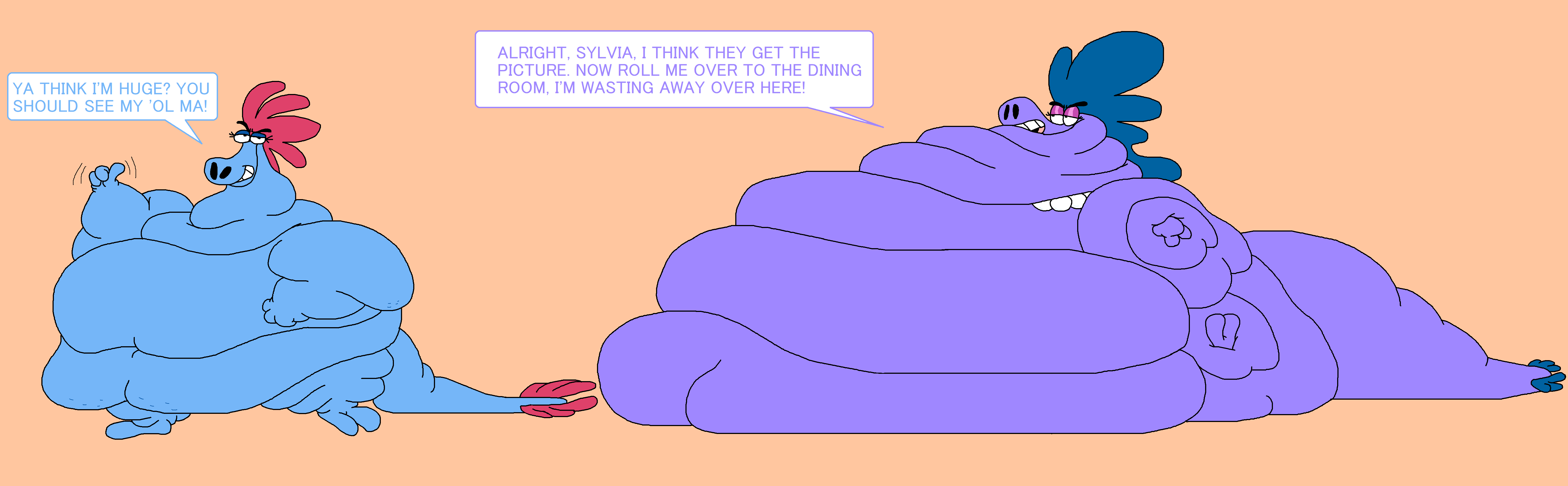 Post all his art that wouldn't be allowed on /bhm/. Western and Eastern characters are allowed; inflation, fat stuff, etc, just post what he's made. Anyways I'm looking for an inflation sequence with Brick and Boomer that he drew.