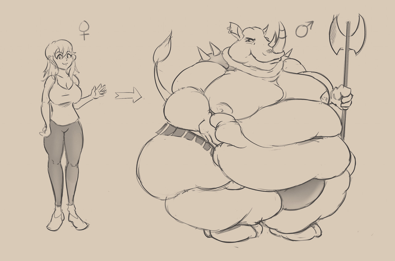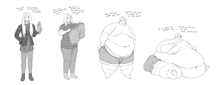 Dunno if some story here does count there, as long as it is related to ftm/defeminization weight gain transformations, unless "something" does count in this part: https://www.deviantart.com/7cosmicraven7/art/TF-Remote-910845815