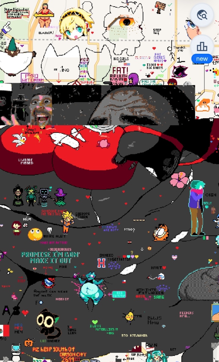 If anyone is interested in helping complete a fat Miku I’ll leave this link here, https://wplace.live/?lat=51.40573065505306&lng=-115.42842806572264&zoom=15 This is where I placed the template for the image I was using, both pics are related to the Miku I’m making. Feel free to join if anyone wants to. I’ve only finished the outline so far.