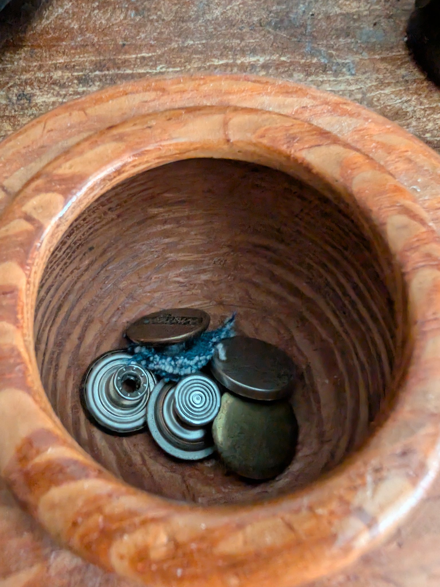 Never have I ever seen a big bellied lady collect the buttons her fat gut has popped off her pants.... Pure artisanship.