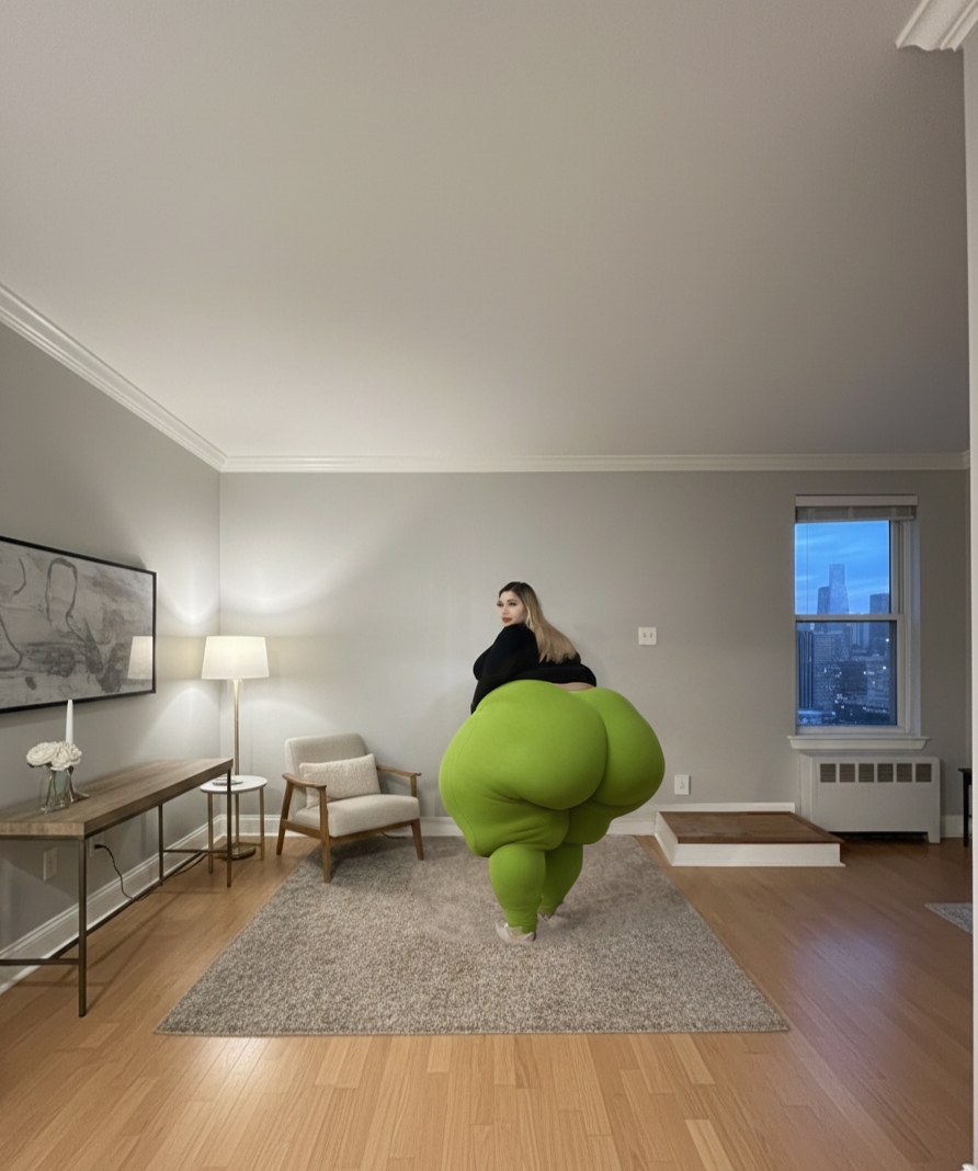Would anyone mind making her belly larger and making her hips huge if that's alright?