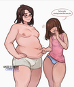 You stepped aside, gesturing for her to enter. As she bent down to enter through the doorway—her belly brushing the frame—you caught the faint scent of lavender and something richer, like warm milk. She settled onto your couch with a relieved sigh, wincing as she adjusted her position. "Sorry," she murmured, "it’s getting harder to move these days."