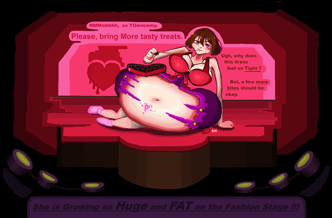 During the weeks that followed, Ana's cookbook became a graveyard of greasy fingerprints—pages warped from bacon drips, sticky notes marking recipes like "triple-cheese mac" and "lard-fried doughnuts" curling at the edges. She raced around the kitchen, her slimming body on full display in only her bra and panties, whisking heavy cream into scrambled eggs while her own breakfast—black coffee and a single rice cracker—went cold beside her. Max's chair groaned under him now when he sat to eat, the wood creaking in protest as his thighs spread wider around the table's edge, his belly resting against the lip like a second placemat.
