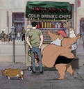 When i saw her... the beast's child, moving slowly, heavily, accross the door of the restaurant, with color-off black clothes (she must have thought wearing black clothes qualified as elegant), looking down, shy and introverted, abundant and corpulent, with cloth skin-tight agaisnt her flab, wheezing slightly, i knew.. i understood... i understood why mom started to eat and reek and sweat and talk and become like a fucking hog in general.