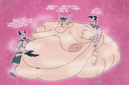 "I swear, its as if Aalrielle is growing more bewitching to me by the day," Tyrion muttered in a different corner of Lothern's palace, "I had thought the delicate curve of her hip the most beauitful thing I had ever seen, but now the sight of her pale flab, the dots of cellulite stretching wider and wider across her buttocks. She grows more beautiful with every bite it seems...and her appetites, she is unsatiable..."