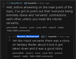 Reposting this here since it is relevant. Does anyone know what this could refer to? In a similar vein, does anyone know of good "fat universe" stories with a sci-fi element such as robot servants?