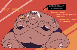 >>4103 I take your idea and expand upon it. Imagine after solving the problem going on with the nanites and everything is solved, some members of society choose to remain overweight, obese, or blob-like. There could be a shift in society involving some of these behemoths that decide to become outright massive. Perhaps the nanites help boost their strength and stamina, for those who want to be like 600 or 800 lbs and still be active. The programmer has the nanites injected into him so the terminal disease is conquered (although I assume that while he was being woken up, they already did that). So now comes a future society that is now likes being huge, since the nanites keeps them from becoming unhealthy. Then some have, what is soon called, "Weight changers" (people who don't stick to just one weight, some days they're thin, some days they're obese, and some days, they just want to be immobile blobs sitting in one place, while their friends come over and use them as furniture as they play video game or something.)