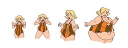 Ashley groaned as she kept gulping the mixture. At first, her corset held tight. It bulged slightly, but the fattening mixture had started to digest. Her arms felt thicker, her thighs rubbed up a bit more. The stream of the mixture was relentless though, and pain came from her stomach. A ripping noise emerged, drawing Ashley's eyes down. A muffintop was forming, creamy flesh rising out beneath the ripping corset. She kept swallowing, her belly kept getting bigger, pulling the corset apart more and more until...BANG