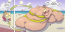 From the crowd's point of view, it resembled nothing more than some dough filled beanbags. A navel deepened in between the upper and bottom folds of her stomach. Arms rising and becoming more cone-shaped, Ashley felt a curious sensation of being elevated. Her back was getting so fat that she was rising off the ground. As she attempted to protest, the cream still pumping, she sloshed back and forth, bigger. Passing the size of a large pick-up truck, her stomach rumbled more. The audience began cheering and whooping once more.