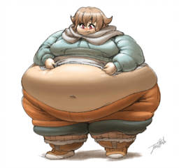 Chell could feel her body expanding rapidly, swelling out even larger than before, now finally ripping out of the jumpsuit that held on desperately for so long. She was in heaven, handfuls upon handfuls of chocolate, vanilla, peanut butter and various other flavors of thick, mouthwatering cake! It was all so euphoric, she could just feel herself sinking deeper into this endless sea of frosting and filling, drowned in both desserts and adipose, only left in a pair of underwear and a bra to cover up her flabby breasts.