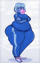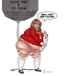 A faint gurgling, like a deep sea waterway could be heard. Lily swallowed her remaining gobstopper in a panic, eyeing various parts of her body. Her stomach now puffed out, skin indentation forming around the belt, She looked down, neckfat folding, patting her thighs, which were stretching the suit out. Alarmingly, she saw her breasts pushed out as well, She tried to squish them back in, to no avail. Her arms wouldn't fold as much for the infant bingo wings that were growing. An intense pressure grew in her behind, and then...*bwomph*