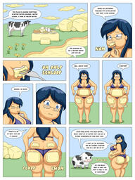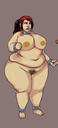 Zarah came to a stop beside the stairwell door. Although brought her momentum to a halt ripples of movement still waved over her body, clearly visible due to her much too small clothing. Almost all of the fabric of her shirt went towards covering her gargantuan bust, leaving a pitiful amount to cover her belly, which hung past her tiny skirt and down to her knees. The skirt itself was essentially sitting on top of her vast hips rather than covering them in any way, leaving her legs and rump pretty much entirely exposed. It had taken some time to find a college that would allow such a display, but fortunately this one was very understanding that even the thinnest layer of clothing would trap in enough heat to almost make her pass out. Plus the airflow felt nice against her fat folds.