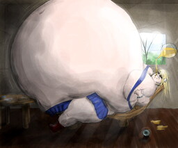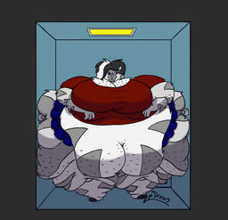 With this in mind Zarah turned around in order to back into the elevator. She made sure to angle herself sideways a bit since her front-to-back length was merely eight feet, compared to her ten-foot wide hips. Though door was wider than average, it was still only a measly five feet. Fortunately about seven of her eight-foot front-to-back dimension was pure body fat, meaning it could squash inward significantly.