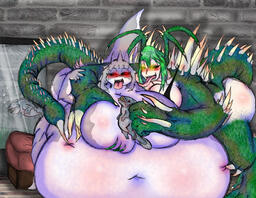 She started forcing herself through the gap, feeling the cold wall against the side of her belly and rump. Taking a deep breath she tried to suck in her gut, making her a whopping 1 ½ inches thinner. Zarah continued to push herself against the gap, wiggling back and forth to get her colossal form through little bits at a time.