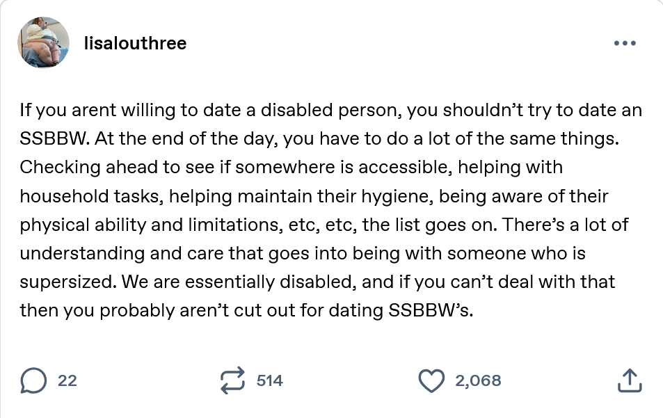 Share any experience/preferences etc. Currently with a 5’7 240lbs and love it. Shes got to a weight where she’s about 70lbs heavier than me. anyone with SSBBW experience?