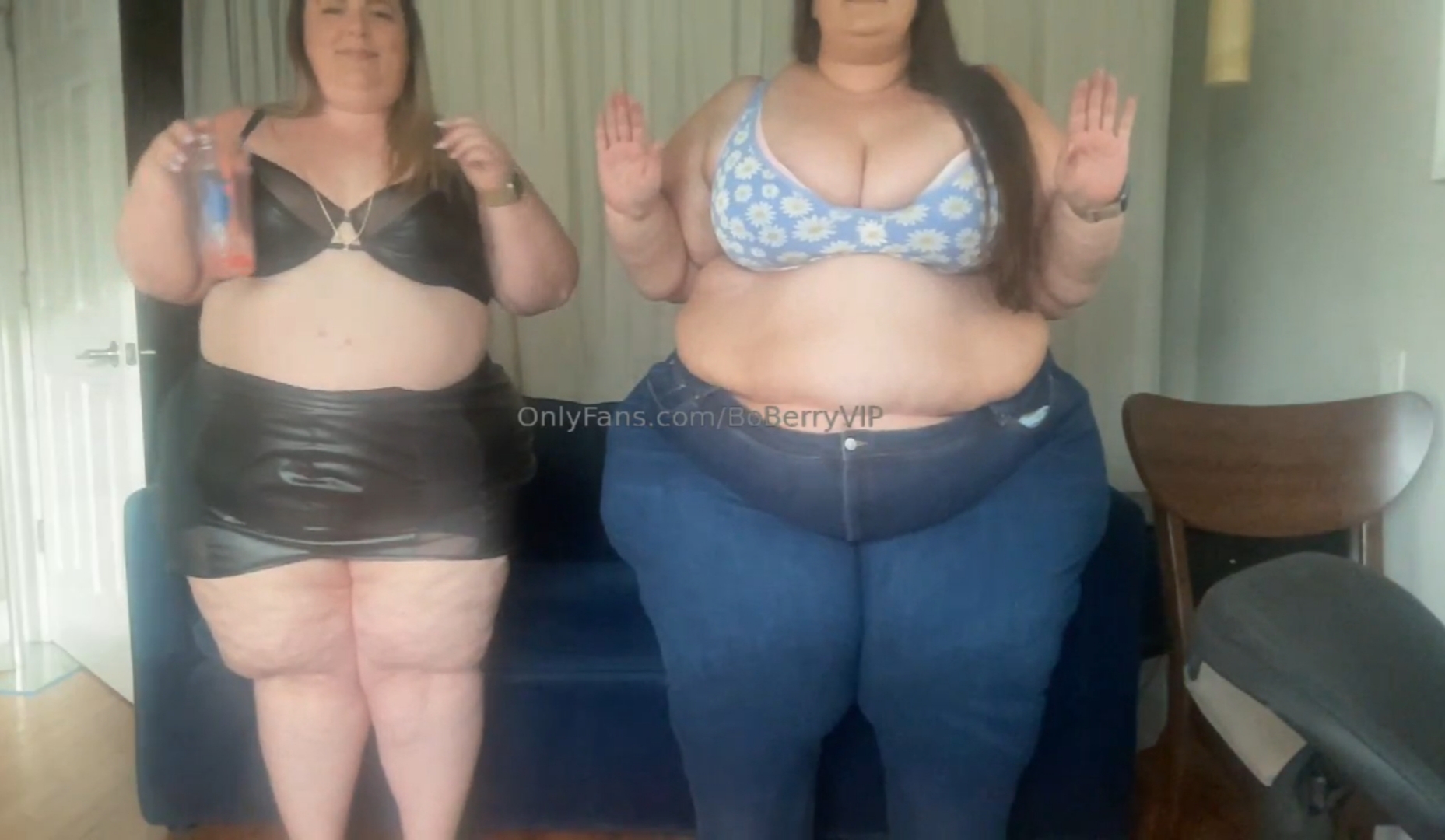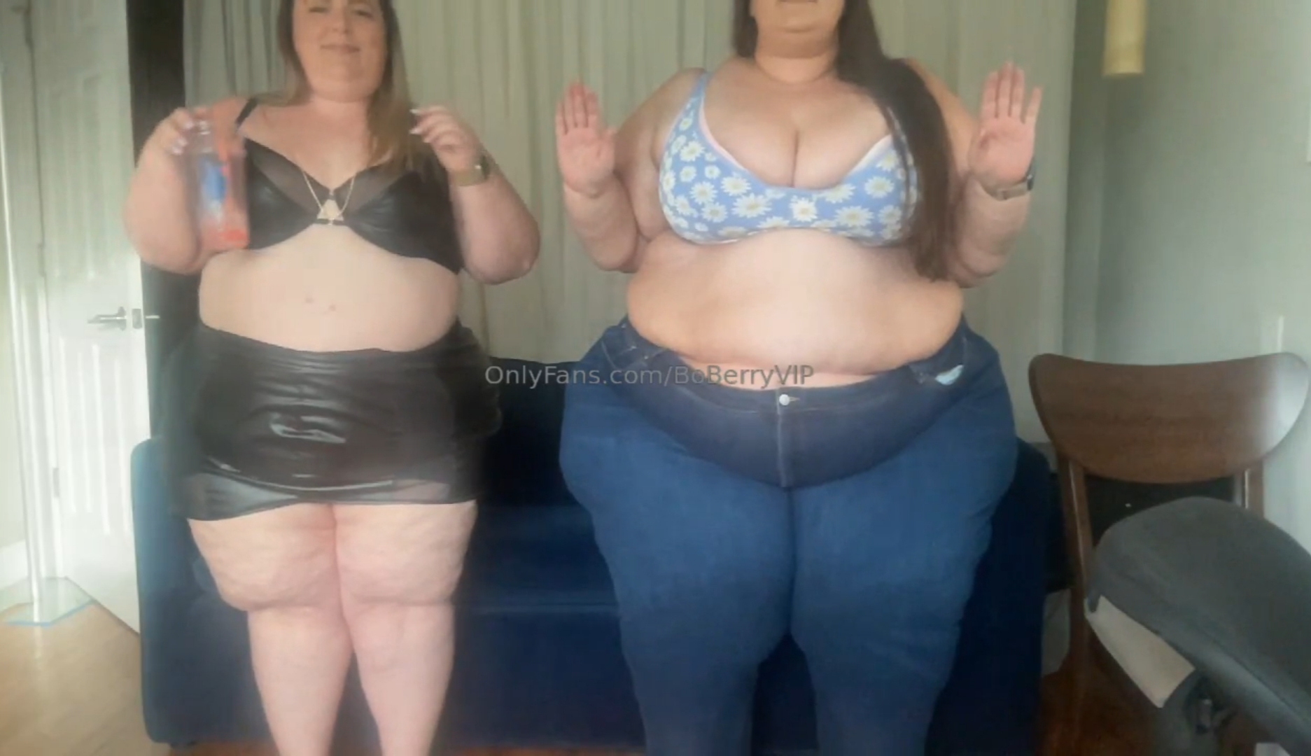 >>83919 Not really. I mean yeah the weight difference was very apparent to the viewer. Both Mary and Jackie claimed that they are both so fat that they sometimes think their about the same size, but that's clearly not the case. Jackie tried on Mary's new pants and was able to fit her body inside one pant leg. About bringing this exact weight comparison up though I believe Mary said something like this before having Jackie weigh in: "Jackie is going to weigh herself. Some of you already know what I weigh currently, but please don't write it in the chat.".