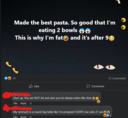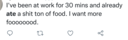 I open a cookie and feed it to her, then put my cock in her. She's moaning. I'm opening more cookies. She says no, but I stuff a second one in her mouth, and she starts cumming, her whole body convulsing. Then, she burps, and puke actually comes out. "Okay, I think we've hit your limit," but she eats another while I'm fucking her. She's just cummming harder and harder, and I'm about to cum, too, when she starts vomiting. For some reason, I cum right then and there, probably 20 fucking spurts, despite this being the 5th cum of the night. She cumming too, but still puking. I take a handful of it and bring it up to her mouth. She actually opens her mouth to eat it but instead pukes some more. I cum again, and so does she. We are both pooped at this point, water dripping, covered in vomit; her pussy is a mess, and the bet is wet with her squirt, so I lay down in her, puke with her, and kiss her. I tell her we hit her limit, and she says, "Well, at least I'm not nauseous anymore." I open and feed her the rest of the cookies. She tells me to please her one last time, so I go down, licking her all around while she eats her cookies and cums several more times. We fell asleep on top of our love juice and the gluttony mess. Neither of us had ever come that much in our lives.