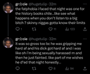 I see her across the street, staring at me, still crying. I walk up to her, but she leaves. Fuck... So I message her that I am so sorry, that I wasn't attracted to the fat lady, just intrigued, and that I'd be at our hotel. No answer. I go back to the hotel and beat off three times in a row. I'm watching my girlfriend during this time, ensuring she's safe. It's almost 9 p.m. I see her get to the hotel, but she doesn't come up. She just stays at the hotel. I'm worried she found a dude to cheat on me with. She told me that she cheated on a boyfriend in the past as payback for what he did. I was getting really fucking worried, so I started texting her more and more. She finally texts me, "Don't worry, I'm okay. I love you and accept you." Okay, that's good, but I still don't feel great about it. I keep texting her, "What's going on?" and she sends me a picture. She's at the hotel restaurant with chicken wings, calamari, and a country-fried steak with mashed potatoes smothered in gravy and a half-finished Lava Flow. I message her, "Want me to come down?" and she responds, "Up to you."