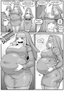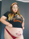 I grab the next one, and she says she thinks she will puke if she eats it. I don't want her to miss out on any calories, so I put it down and come up with my cock to fuck her. I feel like I'm about to cum right then and there, anyway. She says, "That doesn't mean I don't want it, so I take the last beignet and stuff it in her mouth. Then, I proceed to fuck her while she's eating it. I'm cautious, but she's pushing me away because I think I'm pressing down too hard on her massive belly. I back off, and with her mouth full of the last bit of pastry, she says, "Thanks, yeah, sorry... feeling a bit nauseous here." We end up having a callous time in missionary because it presses down on her tummy too much. I suggest she gets on her knees, and we do it from behind. She says okay, but she'll need my help. I help her up, and she feels so freaking heavy. Her upper tummy is bloated out so far; it's firm, but I can hear all the calories sloshing around inside her. I tell him one second, then grab a box of Hawaiian cookies we got as gifts for people back home. She says no, but I open it anyway, and she says, "You're sooooooo bad. You want me fatter to be your perfect fuck toy, right?"