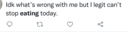 I beat off one more time, then go down. It's a sight to behold. Her food is almost done, and a waiter brings a tray of desserts over lava cake, beignets, cheesecake, and ice cream. I sit down and ask, "You gonna finish all this?" She's sweating, her face bright red, and she looks like she can't eat anymore, but she says, "I feel like I have to for you to find me attractive." I tell her, "That's not true," but she starts crying again, saying she saw me following the massive woman. She starts eating the Lava cake and the ice cream together. She grabs the waiter and asks for another Lava flow. I can tell she's starting to feel sick. She eats a _lot_ of food, way more than she can usually fit. I told her she's perfect as she is, but she said that's bullshit, that she sees me eyeing any woman that is fatter than he, and that she feels like I'm not as attracted to her now that she's not gaining weight as quickly as when we first met. I didn't know what to say, so I asked for the bill and some boxes. She says no thanks to the boxes and orders another Lava Flow. She continues to finish everything except the beignets.