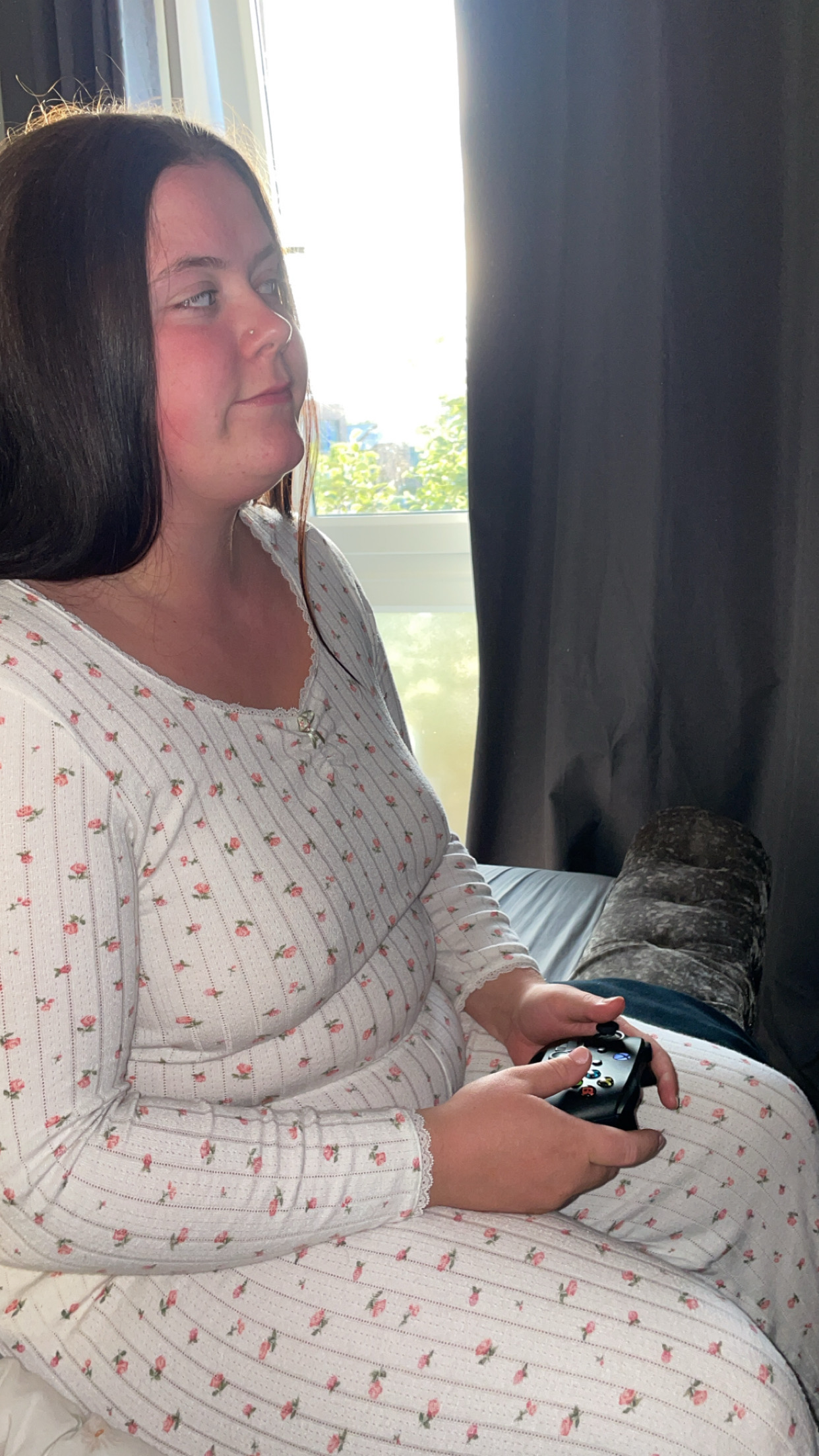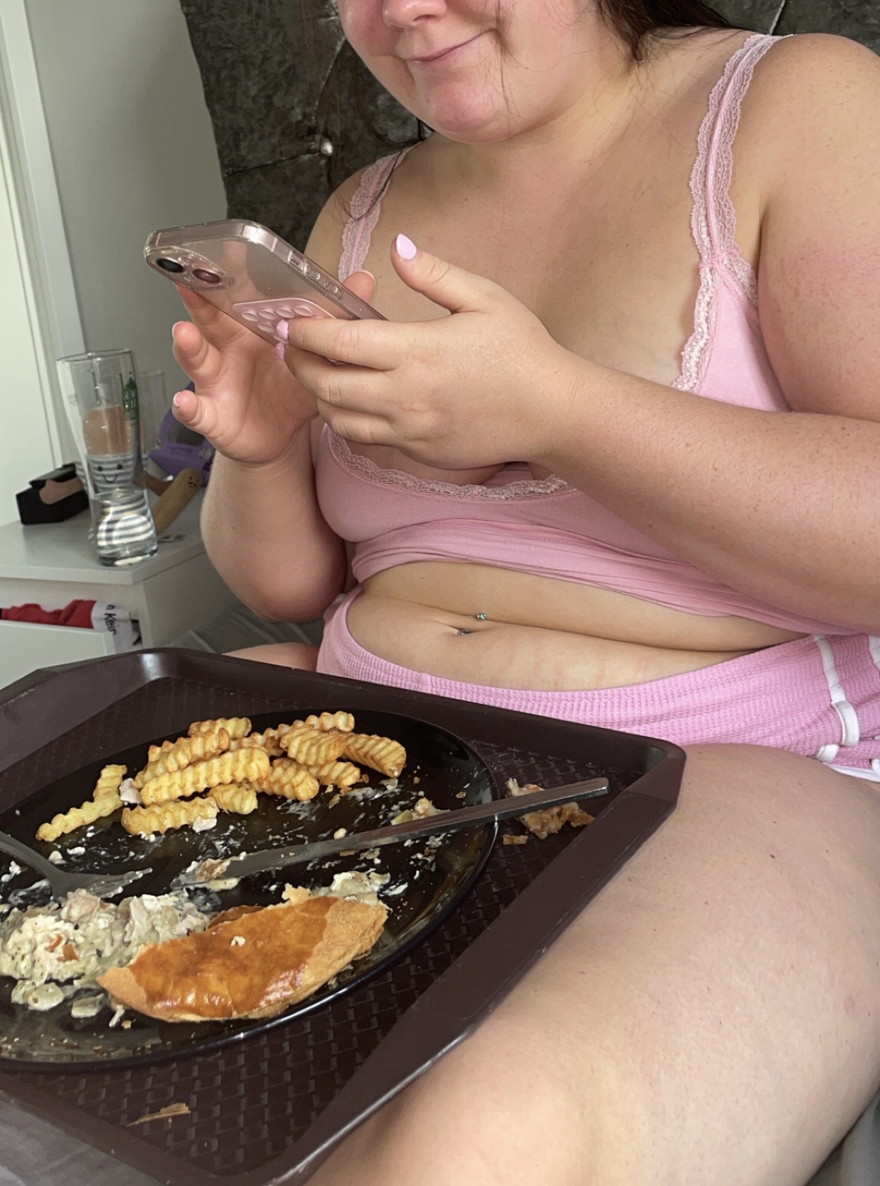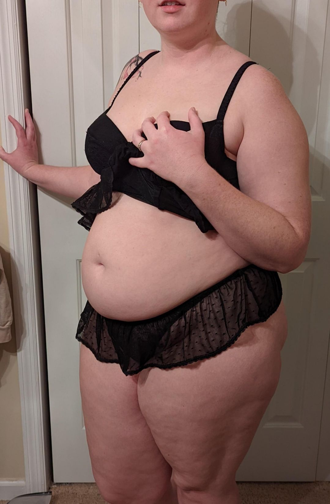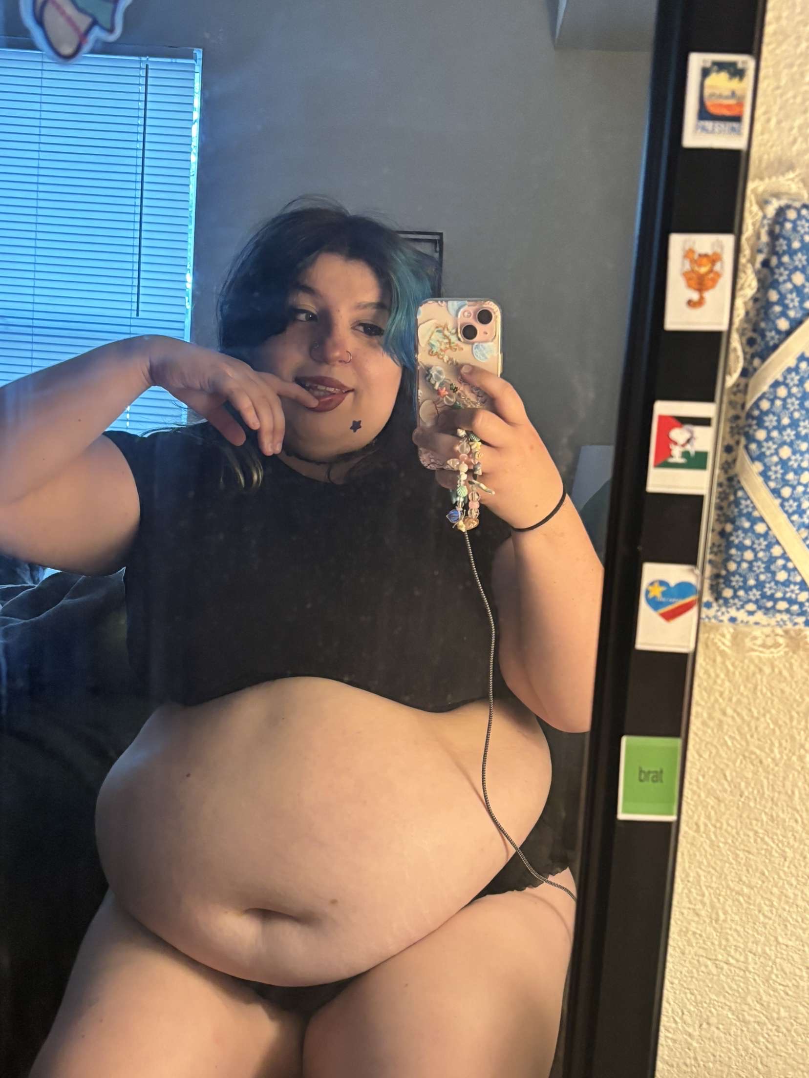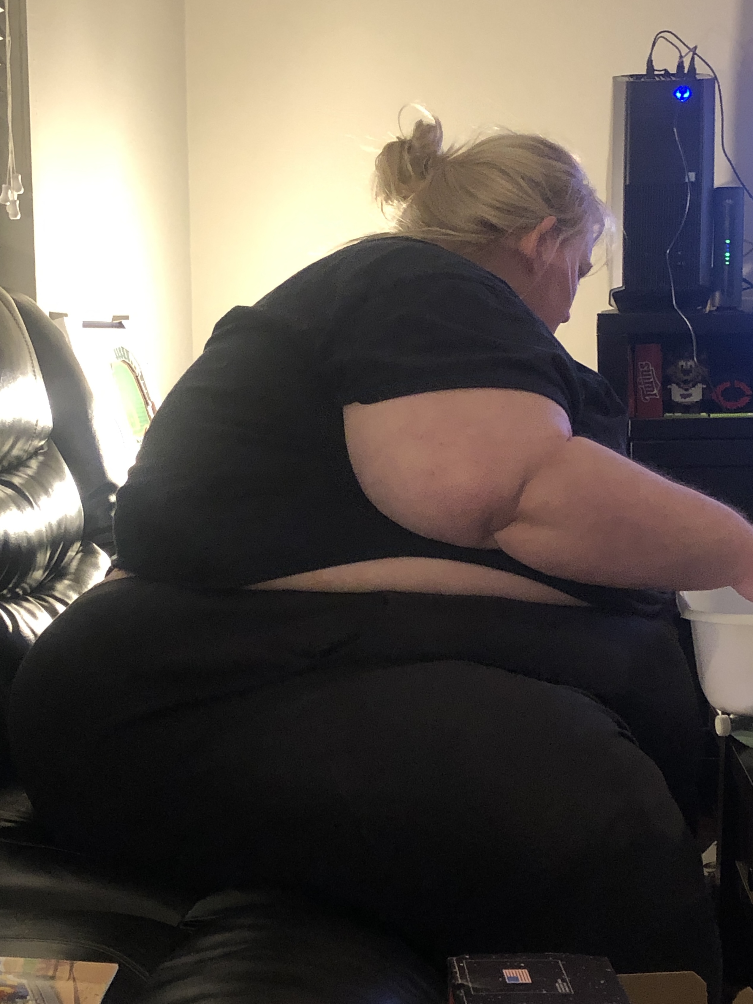 It made her appear so much fatter than she actually was (and she's already a BIG girl ~420lbs), and it felt like she let go of caring about making herself look fatter, or appearing like a "fat stereotype" and is finally letting herself be comfortable. (which, if you date a high-femme fat girl, that's WHY they put so much effort into their appearance; to socially compensate for being fat, everything else about her appearance has to be on-point and inscrutable... it's exhausting.)